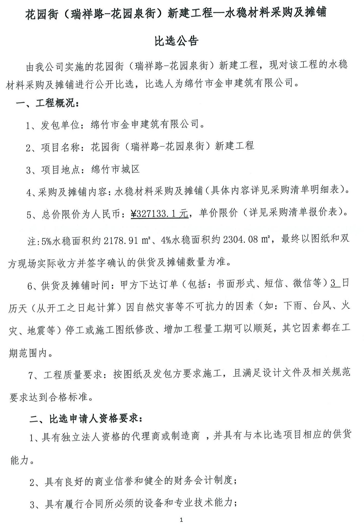 花园街新建工程-水稳材料采购及摊铺比选公告