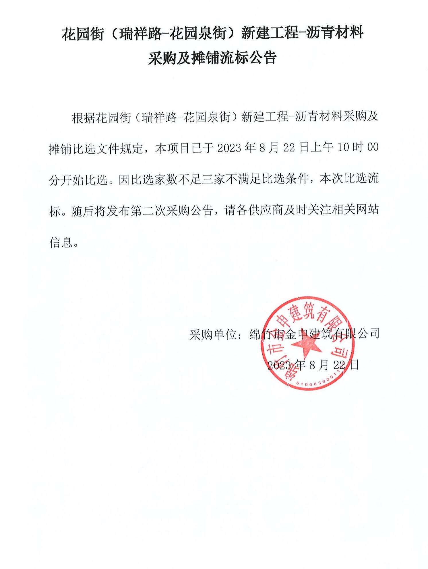 花园街(瑞祥路-花园泉街)工程沥青材料及摊铺流标公告
