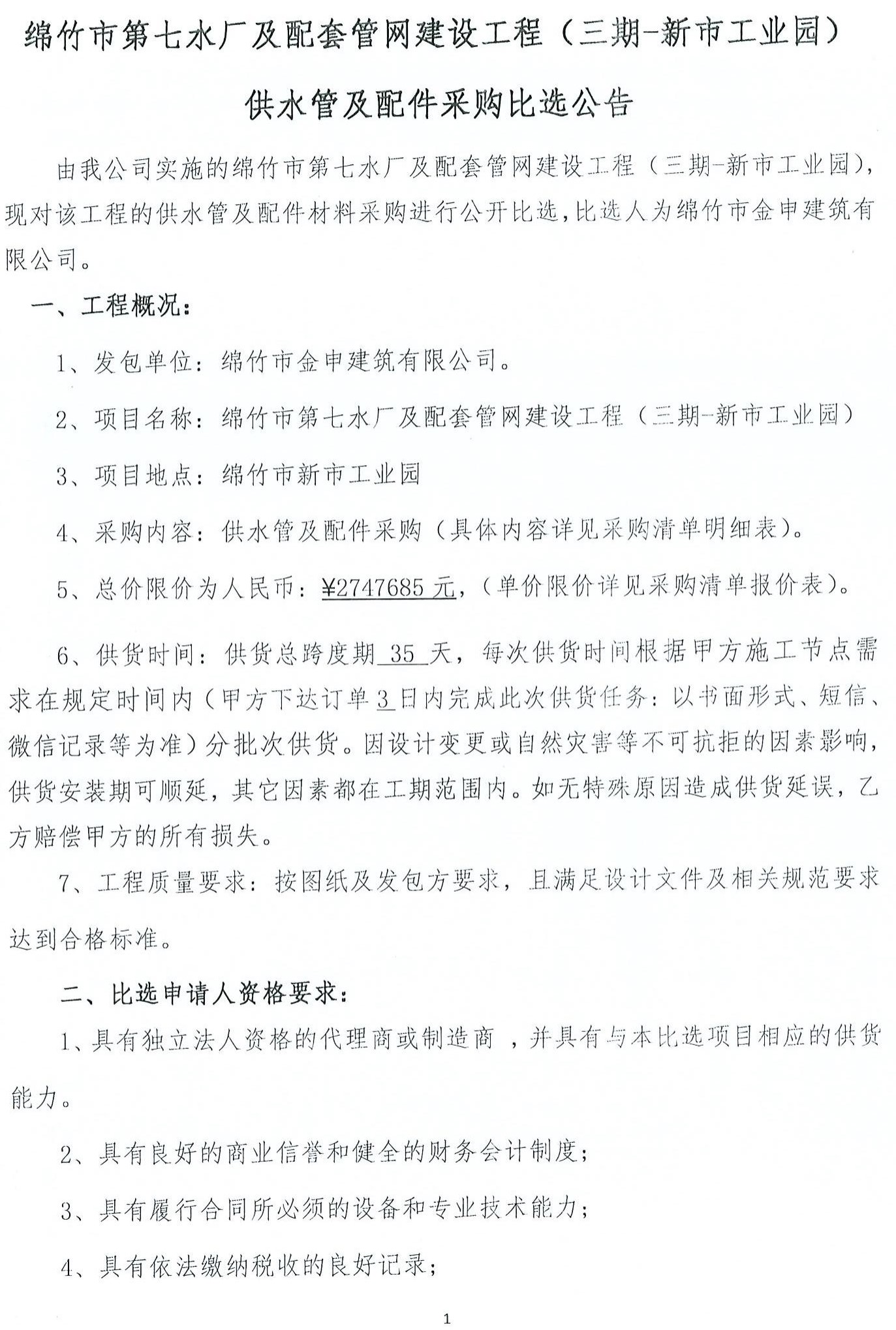 第七水厂及配套管网建设(三期新市工业园)采购比选公告