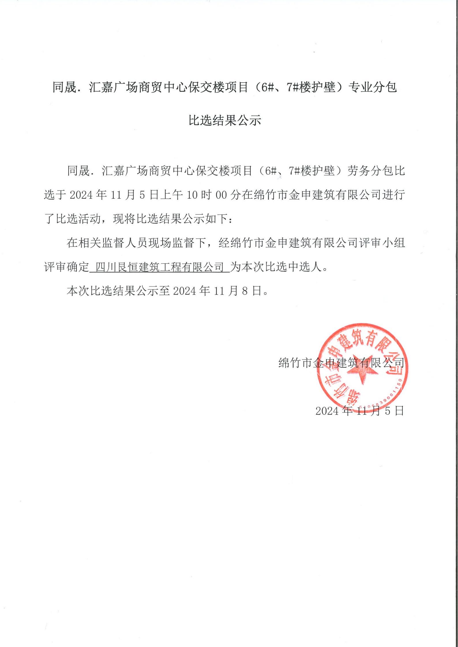 同晟保交楼项目(6#、7#楼护壁)专业分包 比选结果公示