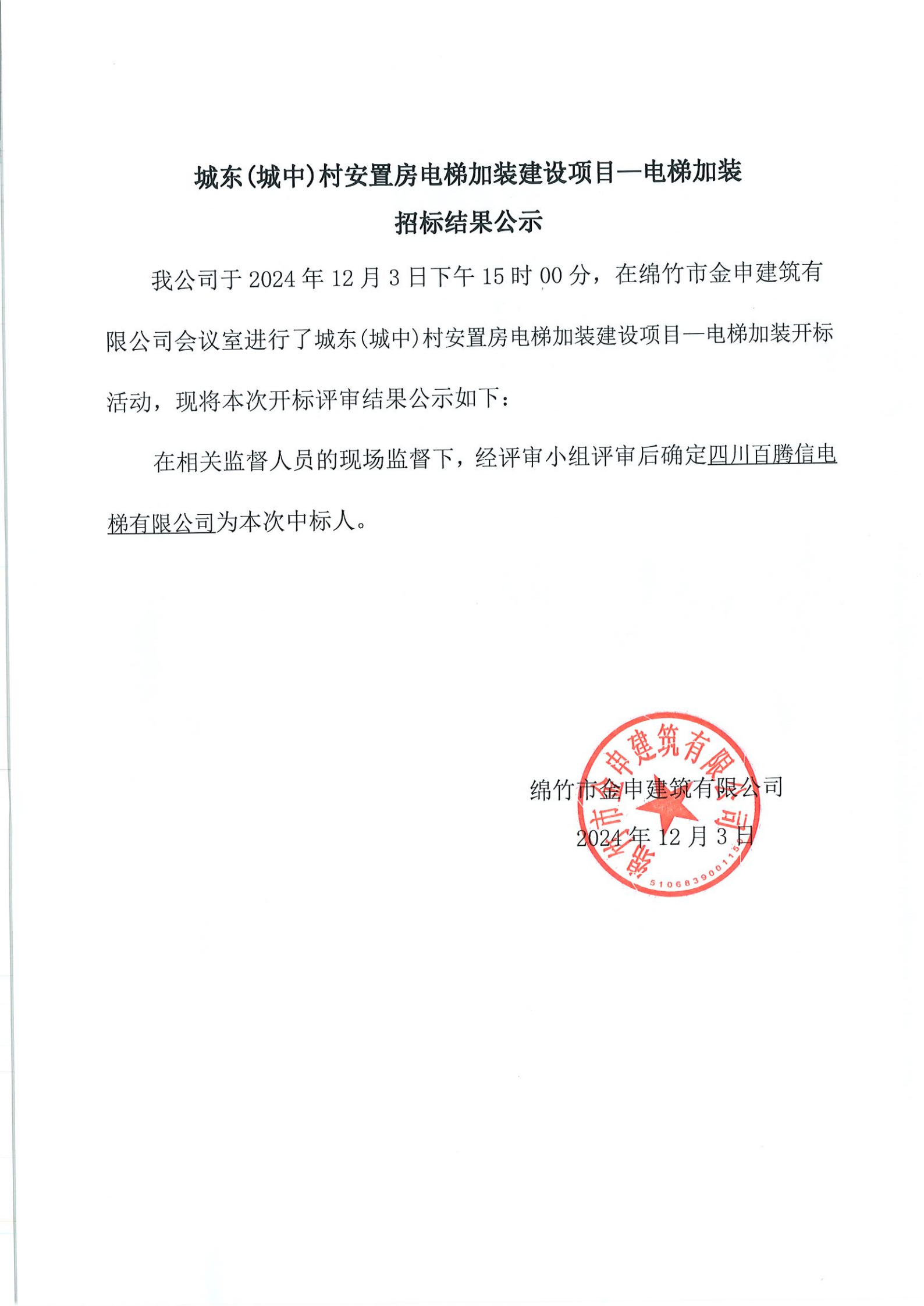 城中村安置房电梯加装项目—电梯加装招标结果公示