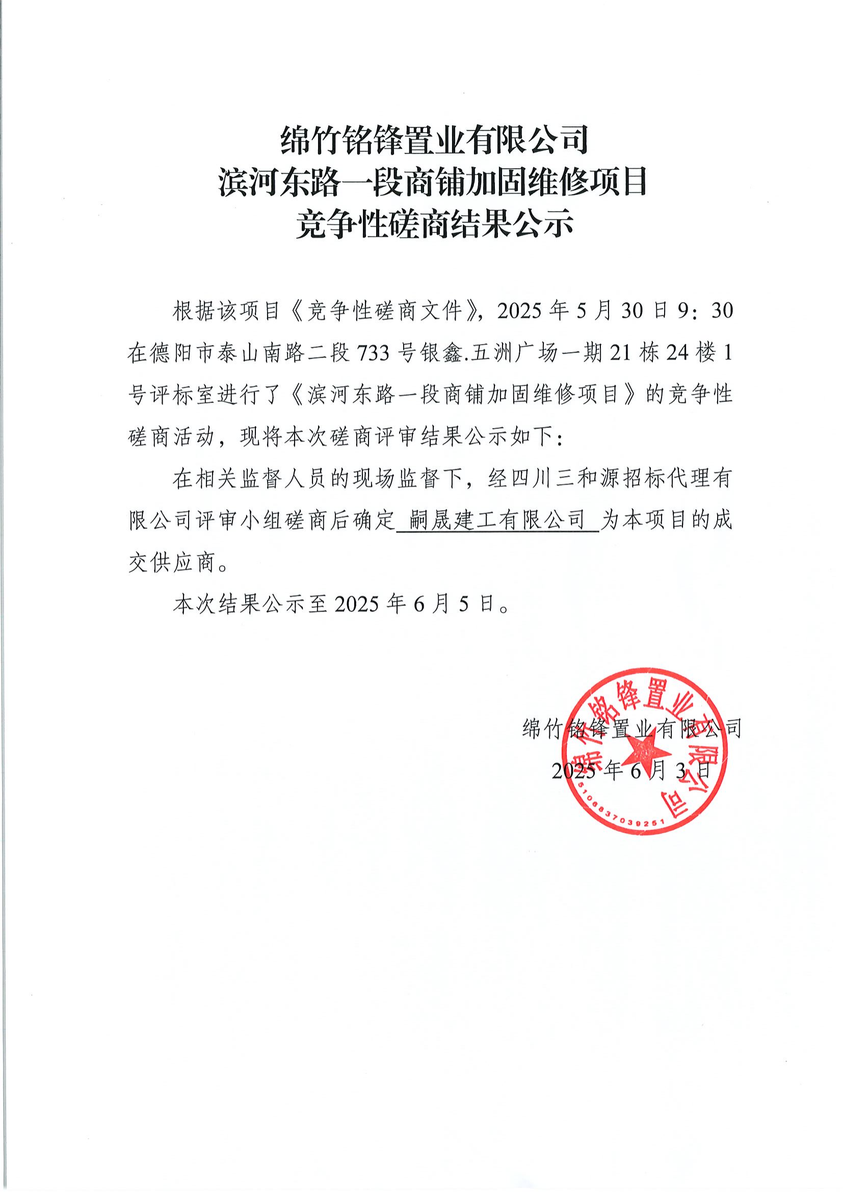滨河东路一段商铺加固维修项目竞争性磋商结果公示