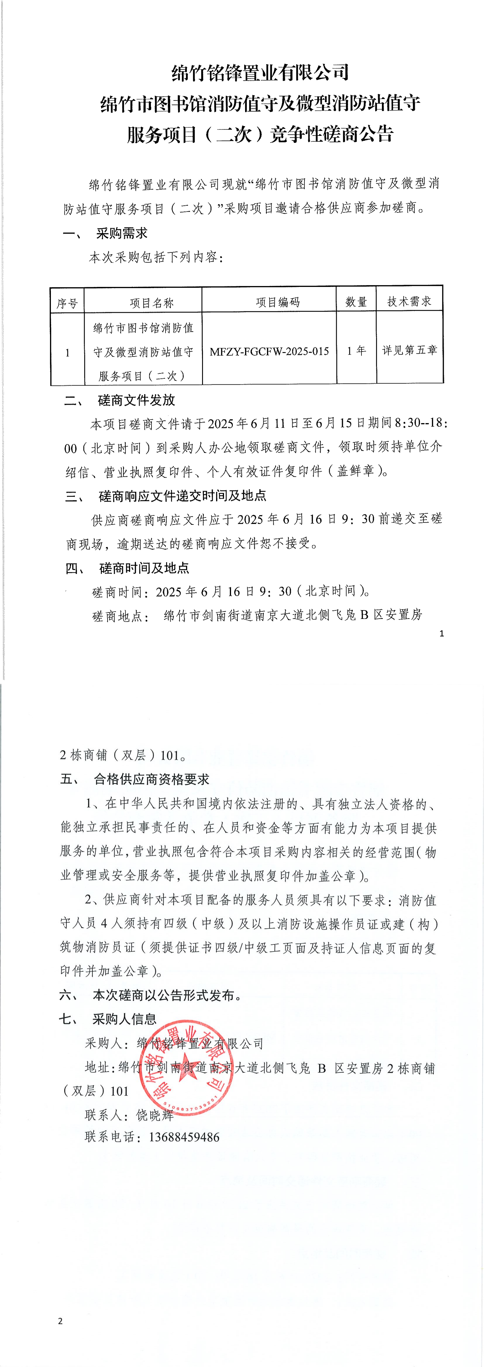 图书馆消防值守及微型消防站值守服务项目(二次)磋商公告