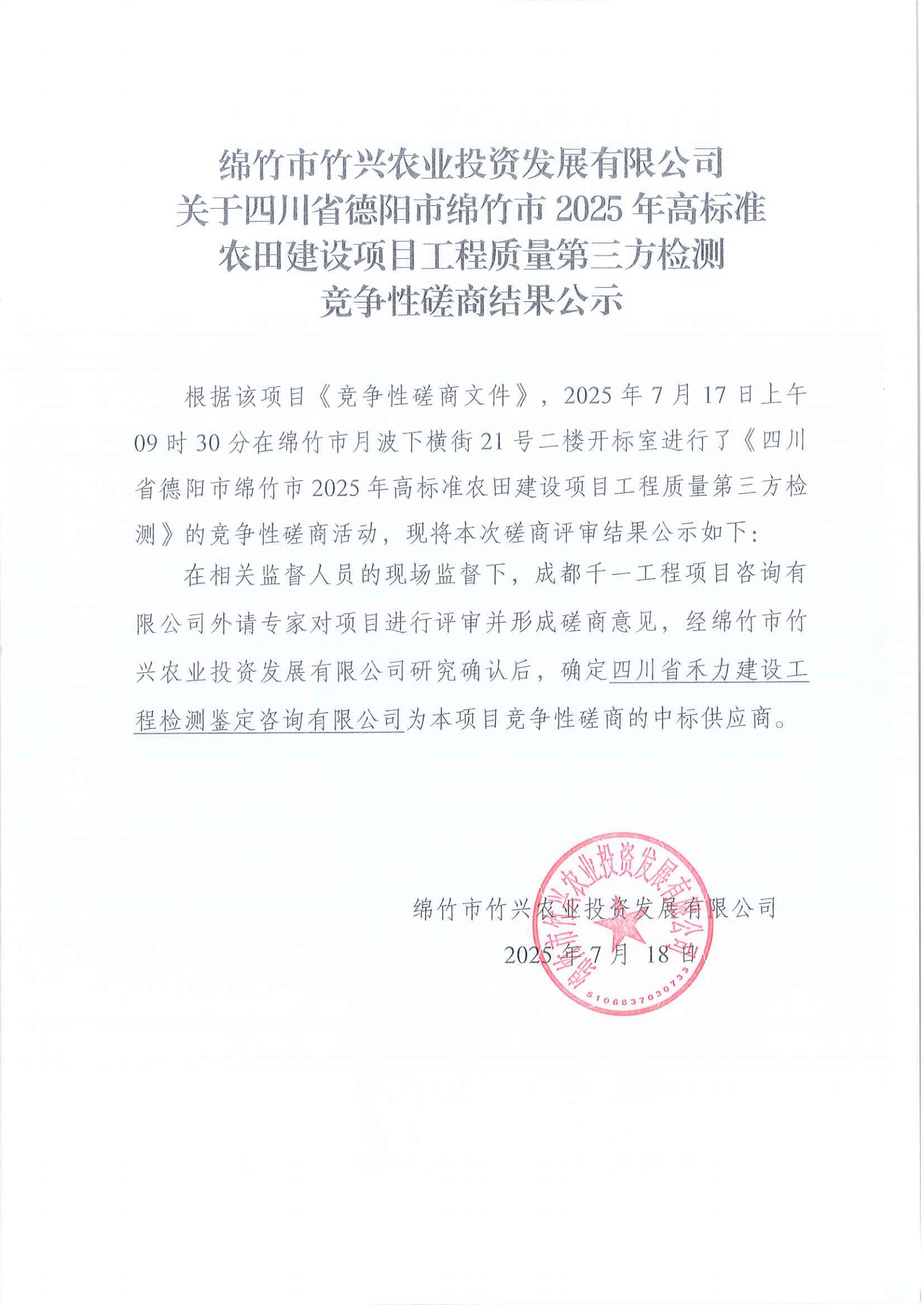 高标准农田建设工程质量第三方检测竞争性磋商结果公示