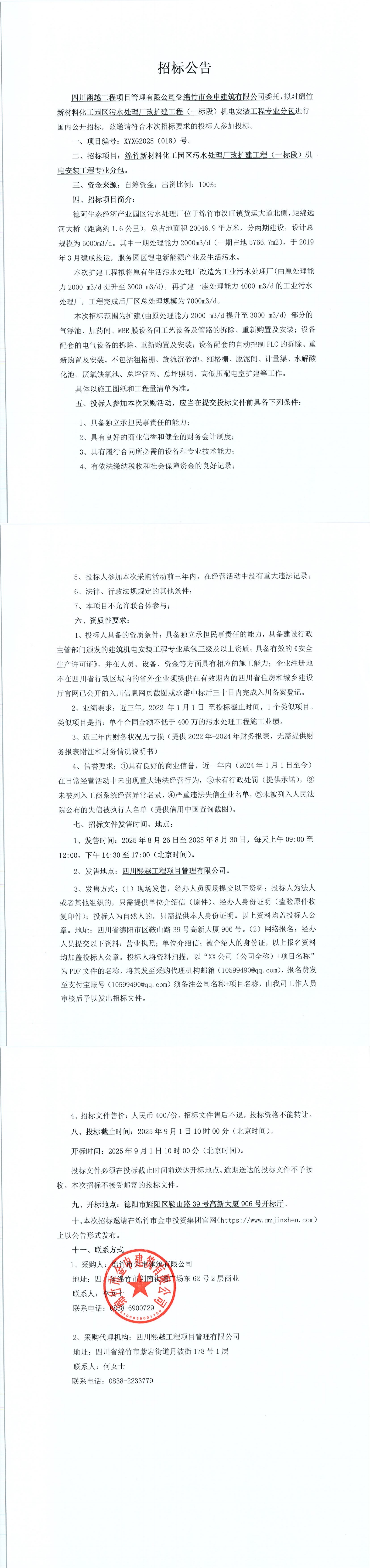 新材料化工园区污水处理厂改扩建一标段机电安装专业分包