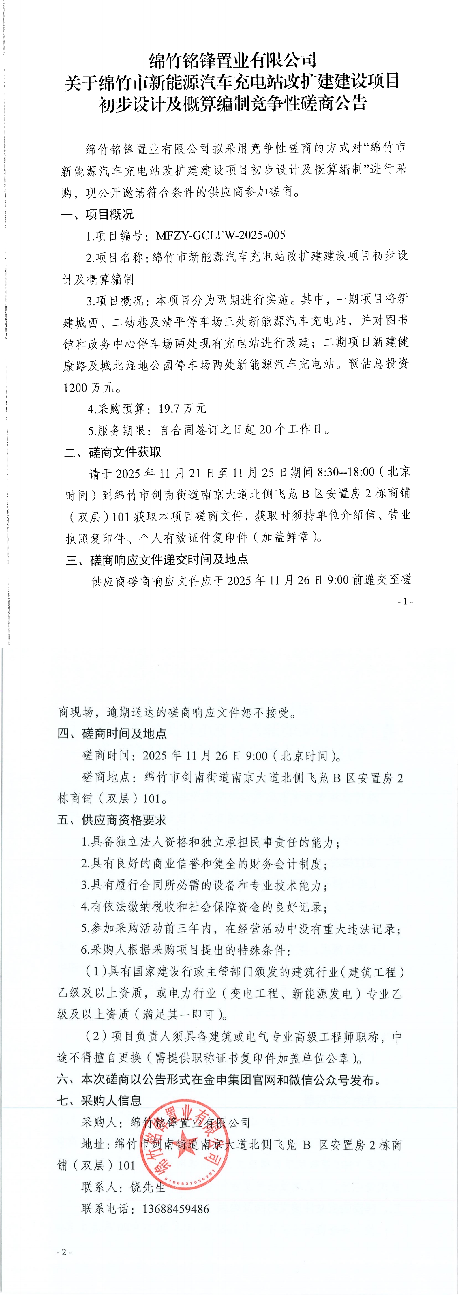 绵竹市新能源汽车充电站改扩建建设项目初步设计及概算编制竞争性磋商公告