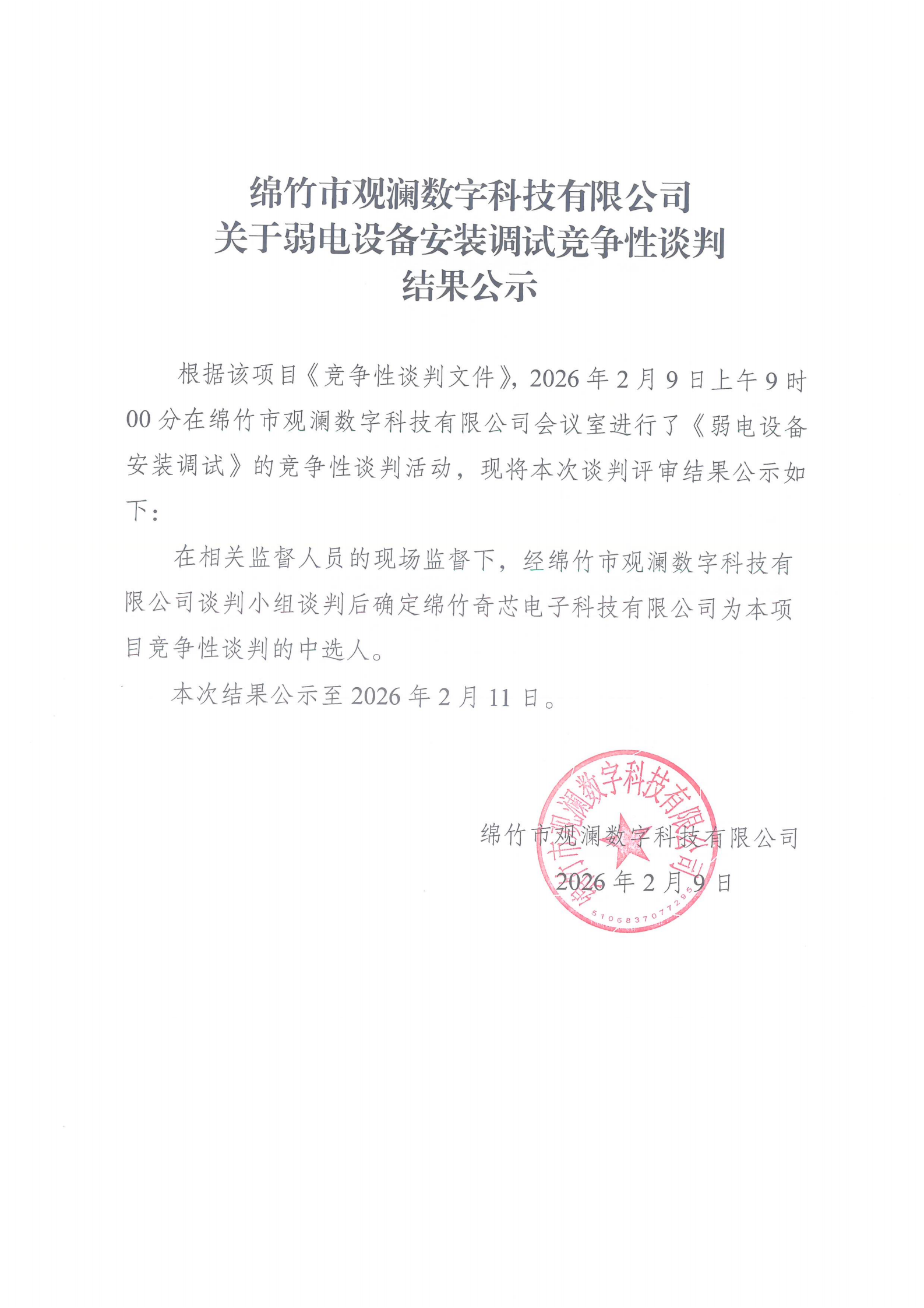 观澜数科关于弱电设备安装调试竞争性谈判结果公示