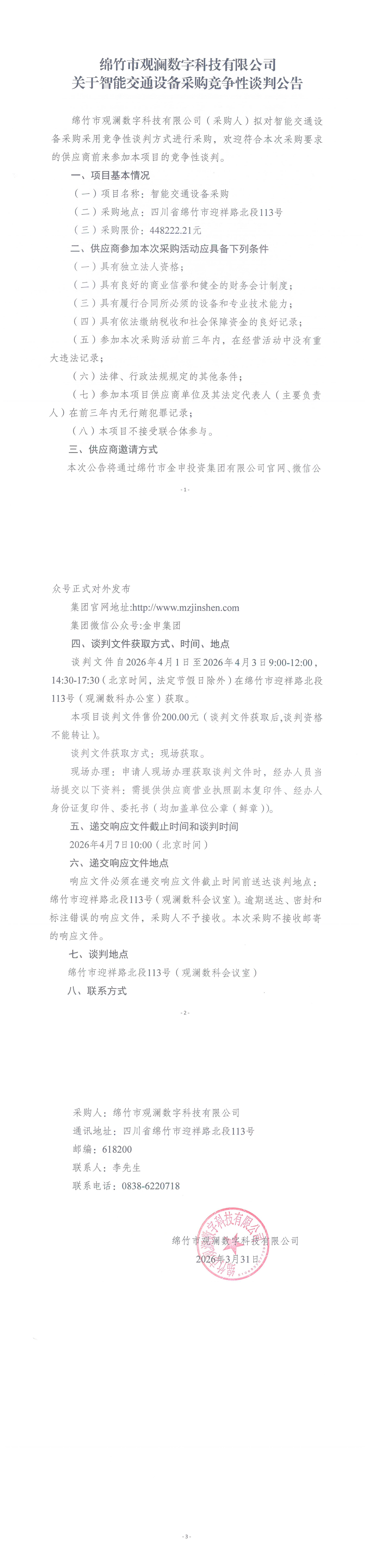 观澜数科关于智能交通设备采购竞争性谈判公告