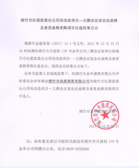 市纪委监委五楼会议室桌椅及食堂桌椅采购比选结果公示
