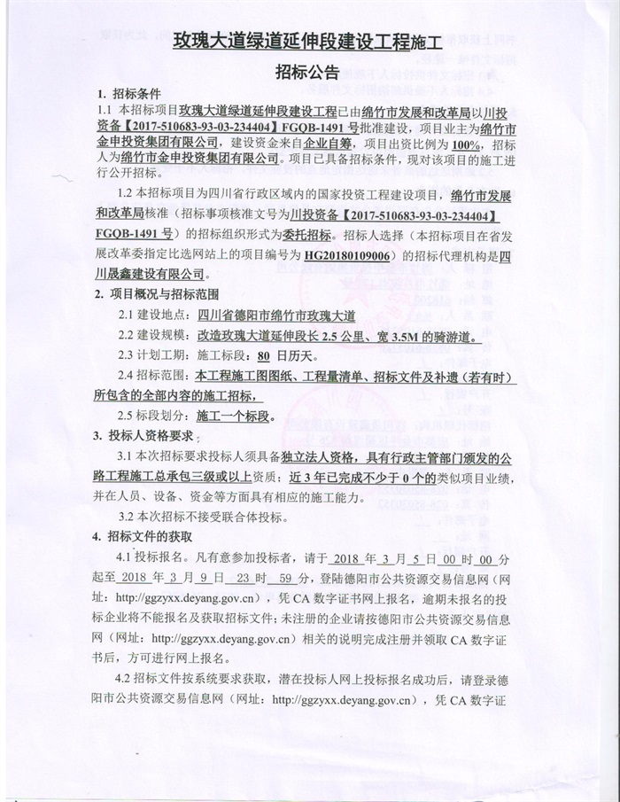 玫瑰大道绿道延伸段建设工程施工招标公告
