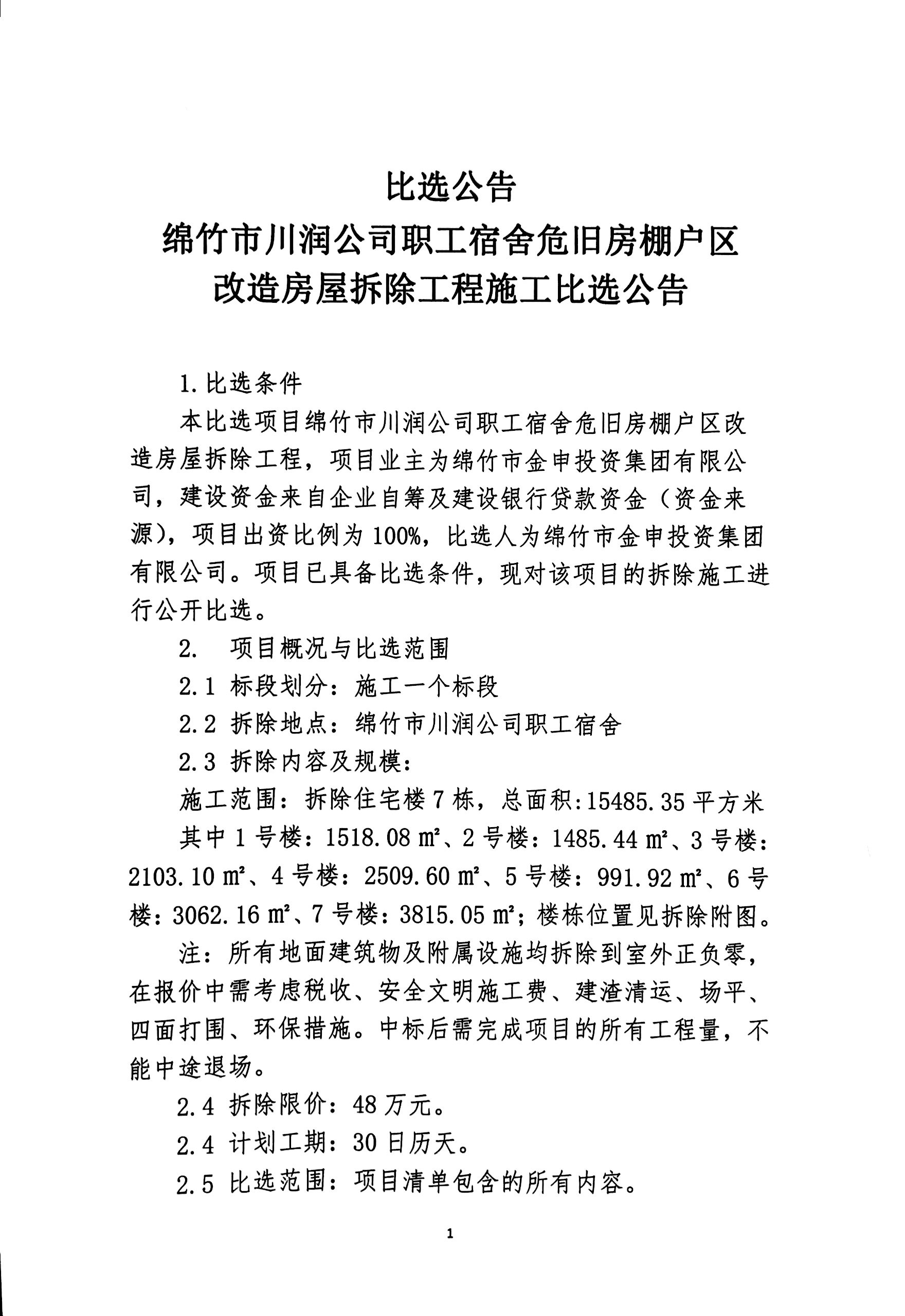 川润职工宿舍改造项目施工比选公告