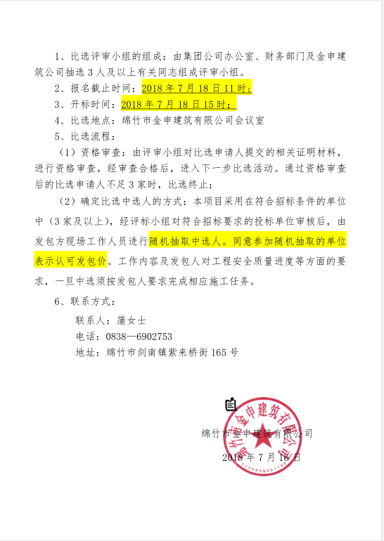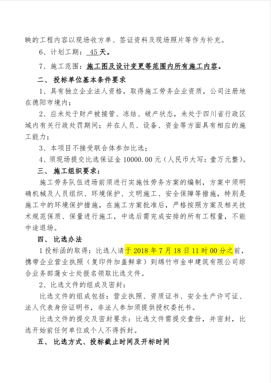 金申建材公司二期工程劳务分包招标比选公告