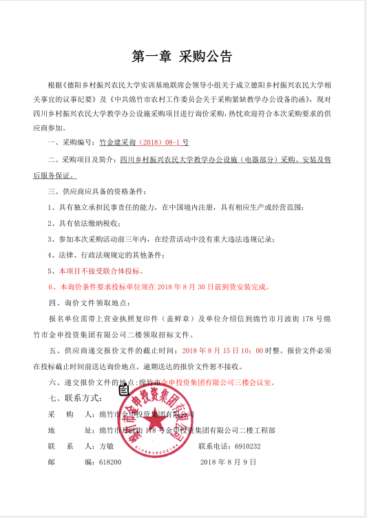 采购公告(农民大学电器等)