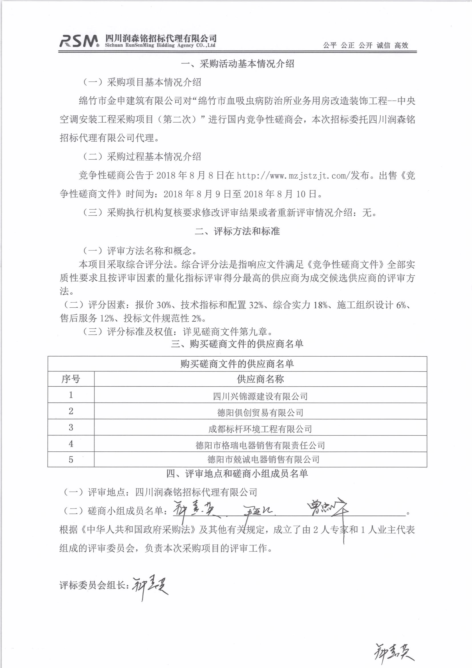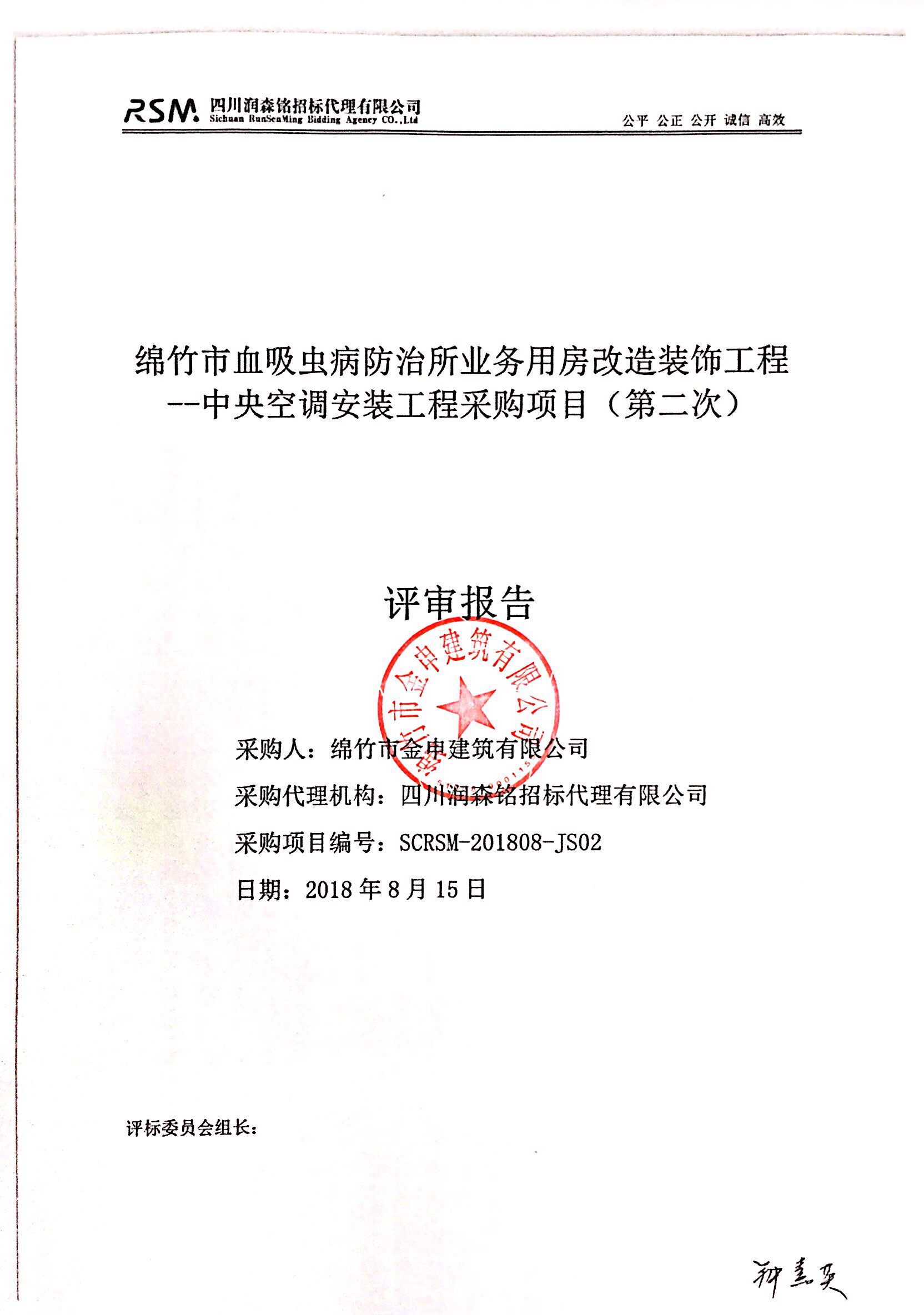 市血防所改造工程—中央空调安装采购(第二次)评审报告