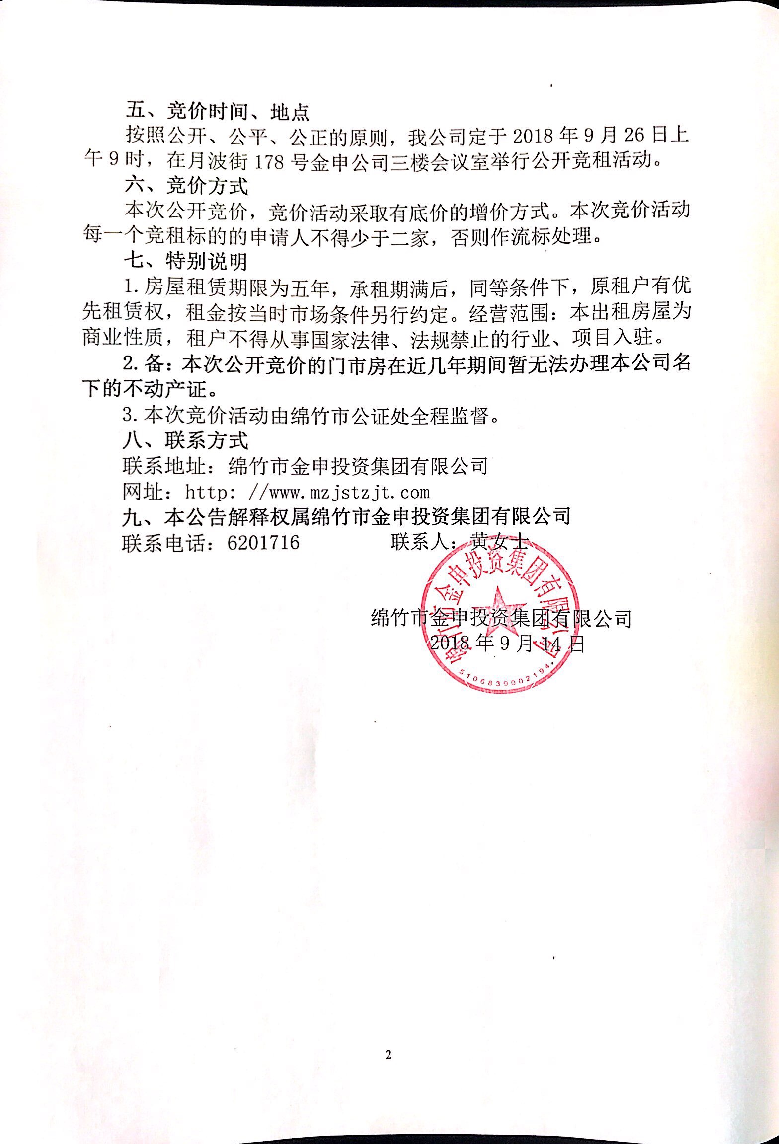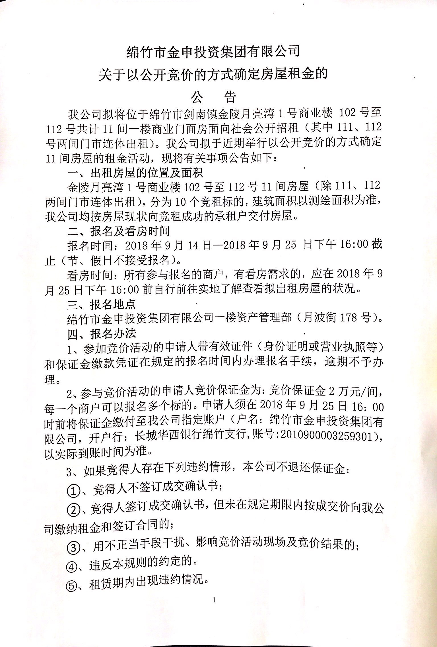 月亮湾1号商业楼112号公开竞租公告