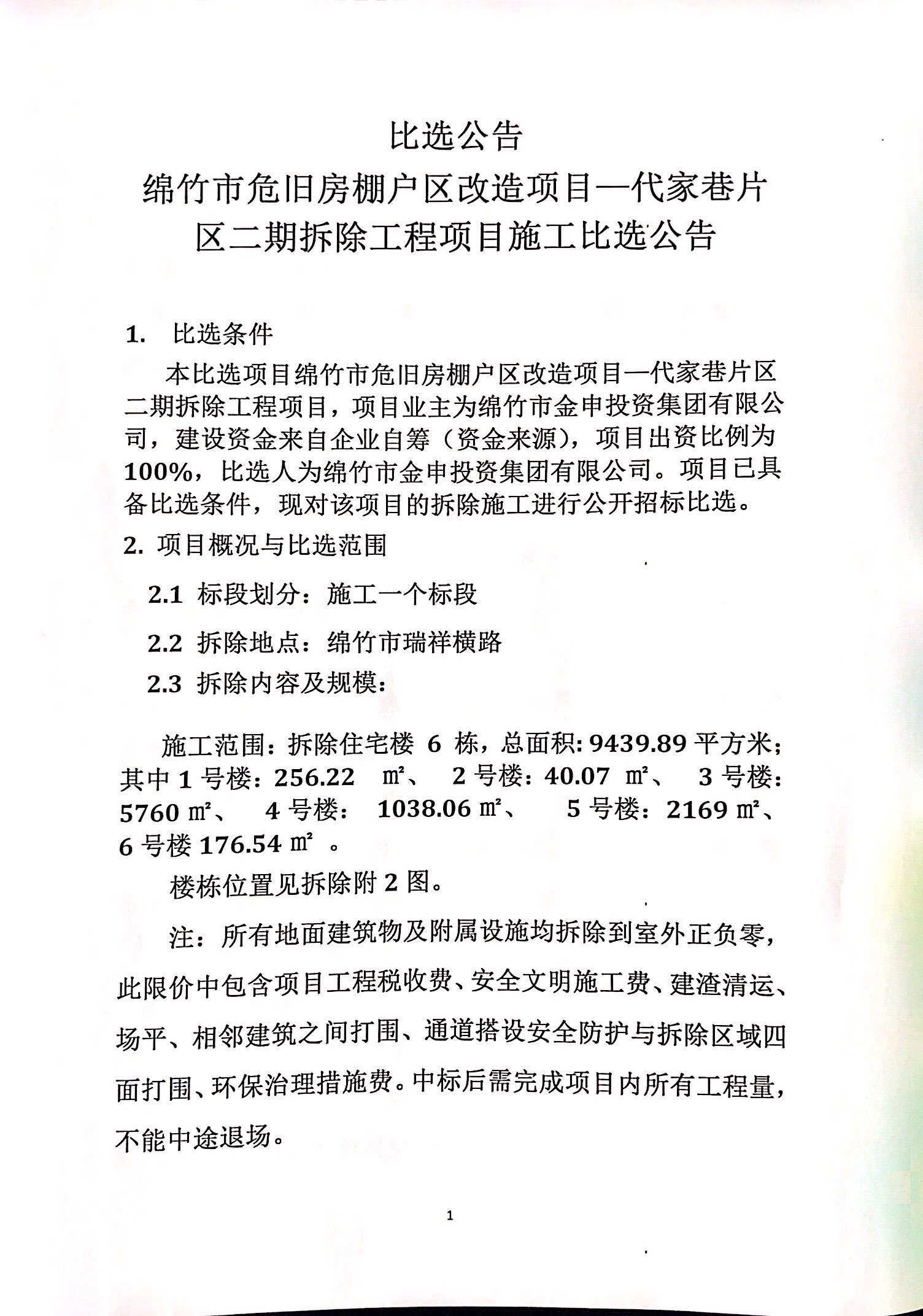 代家巷片区二期拆除工程比选公告