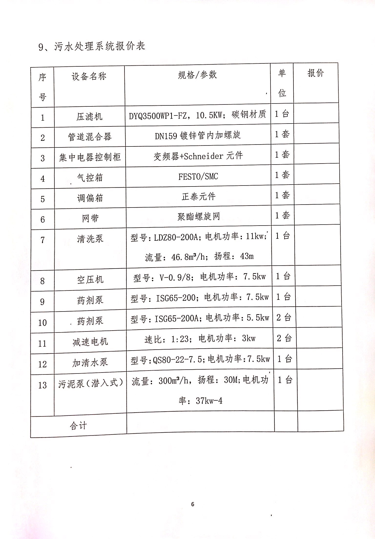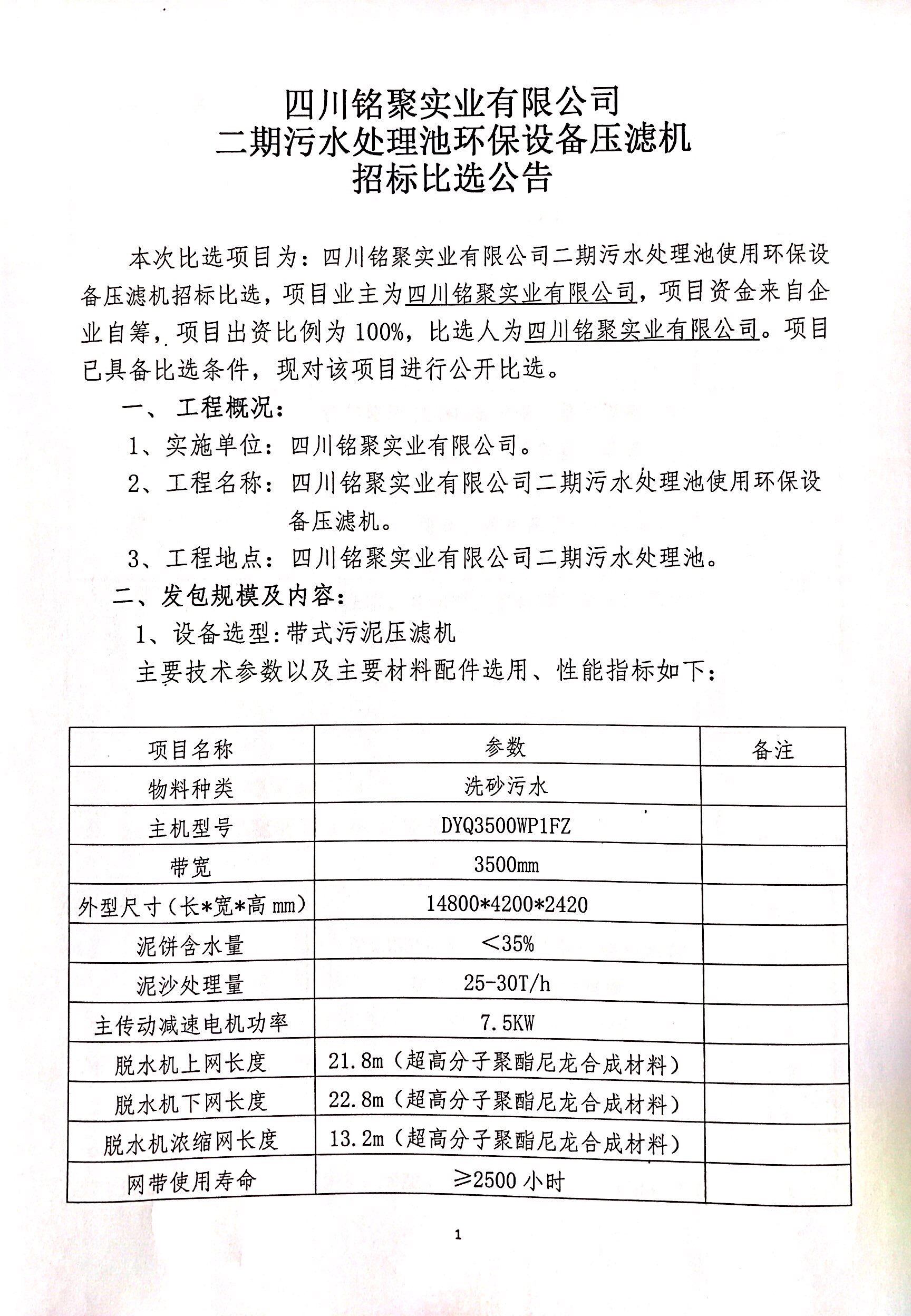 铭聚公司二期污水处理池环保设备压滤机招标比选公告