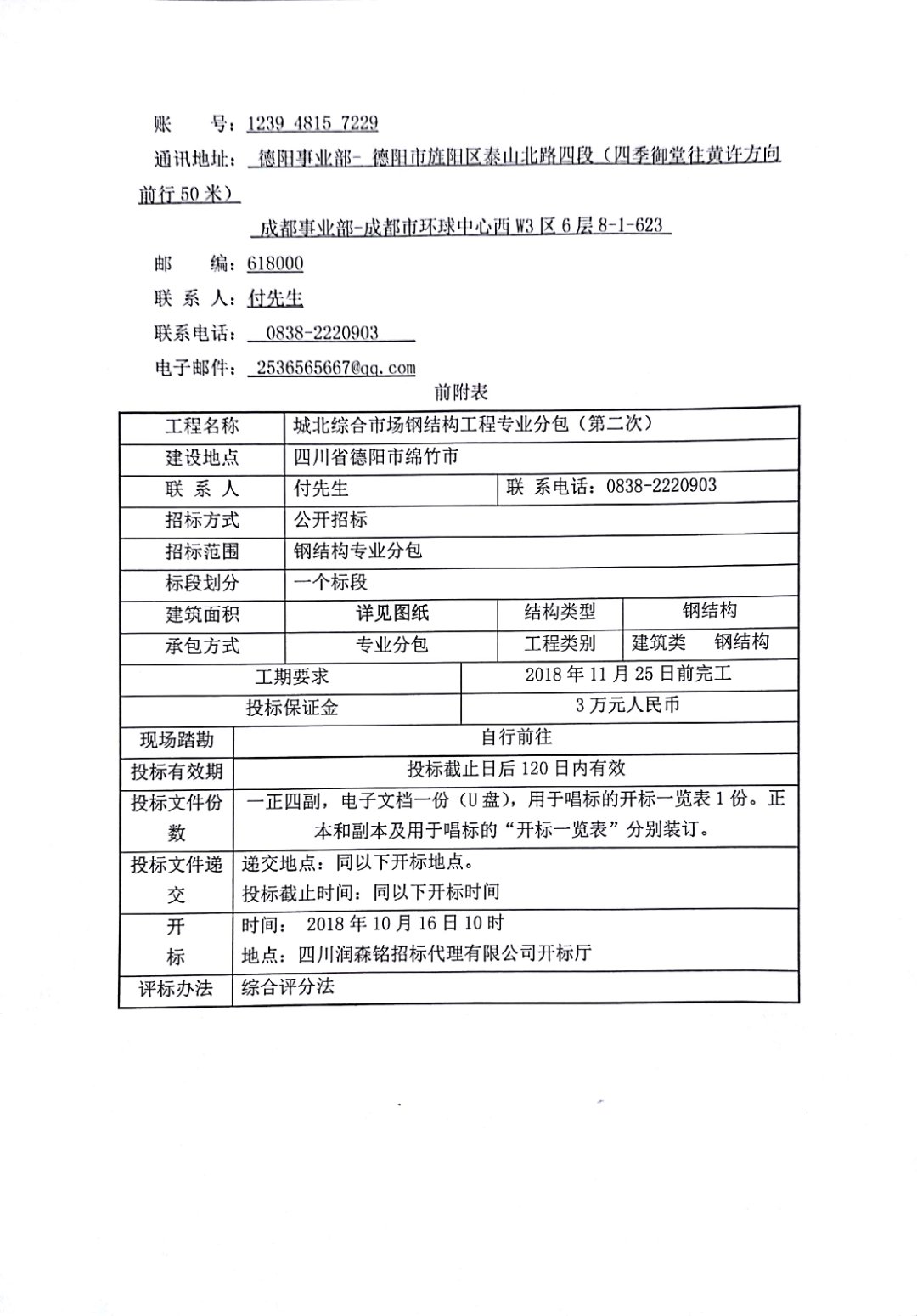 城北综合市场钢结构工程专业分包招标公告(第二次)