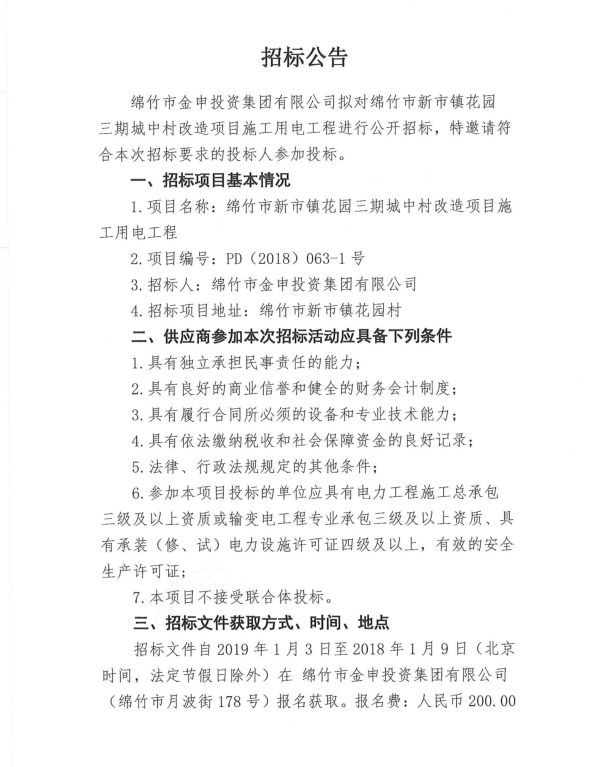 市新市镇花园三期城中村改造项目施工用电工程招标公告