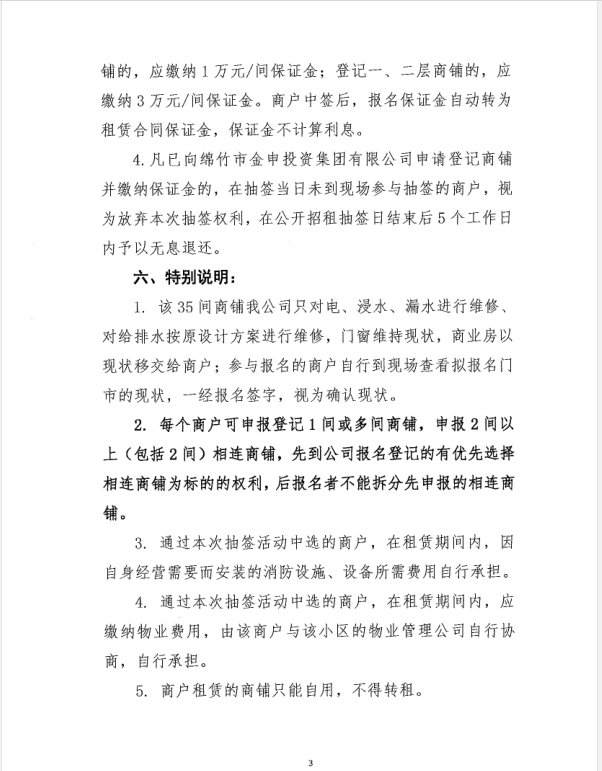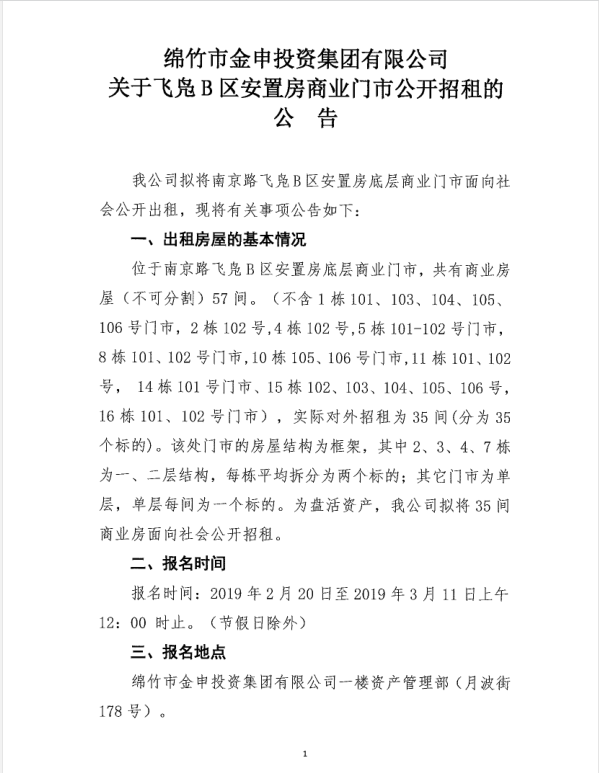 飞凫B区安置房商业门市第三次公开招租公告