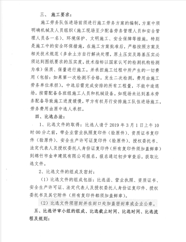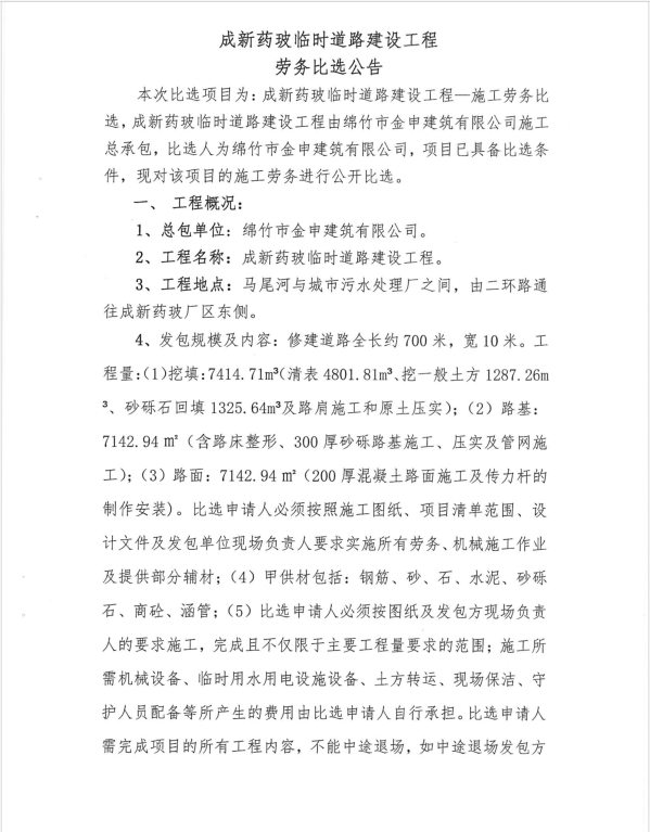 成新药玻临时道路建设工程劳务比选公告