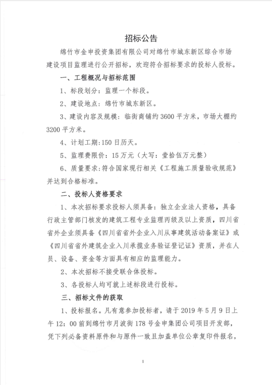 绵竹市城东新区综合市场建设项目监理公开招标公告
