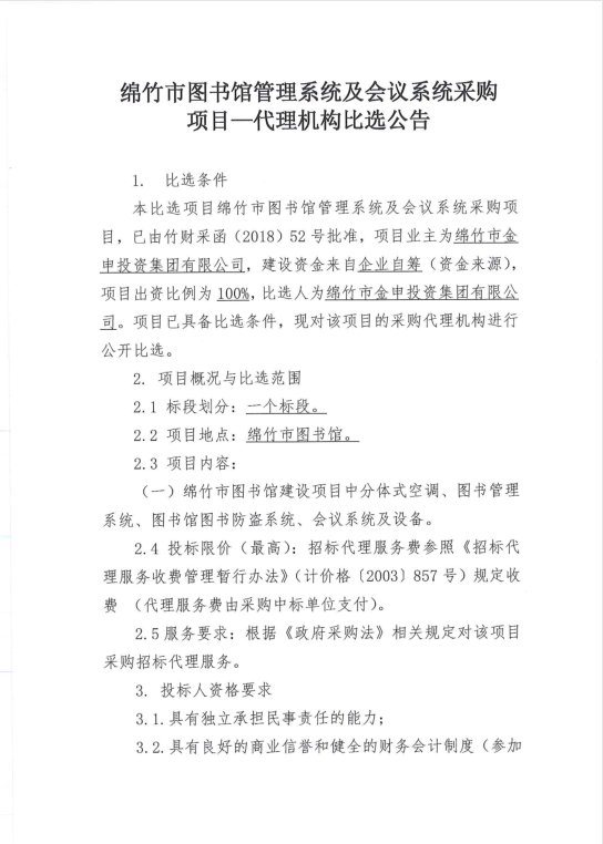 市图书馆管理系统及会议系统采购项目—代理机构比选公告