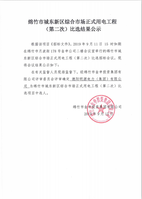 市城东新区综合市场正式用电工程(第二次)比选结果公示