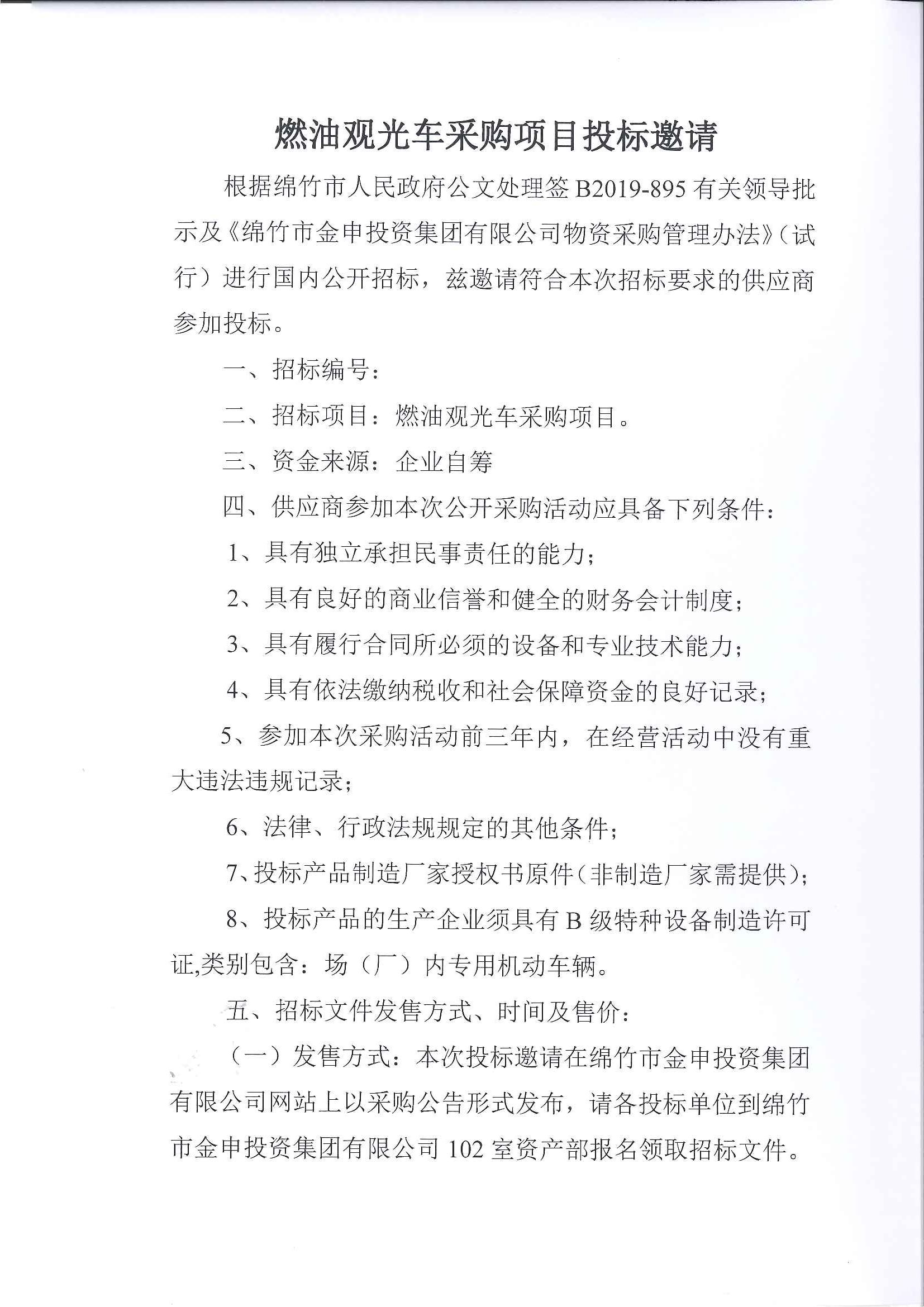 燃油观光车采购项目招标公告