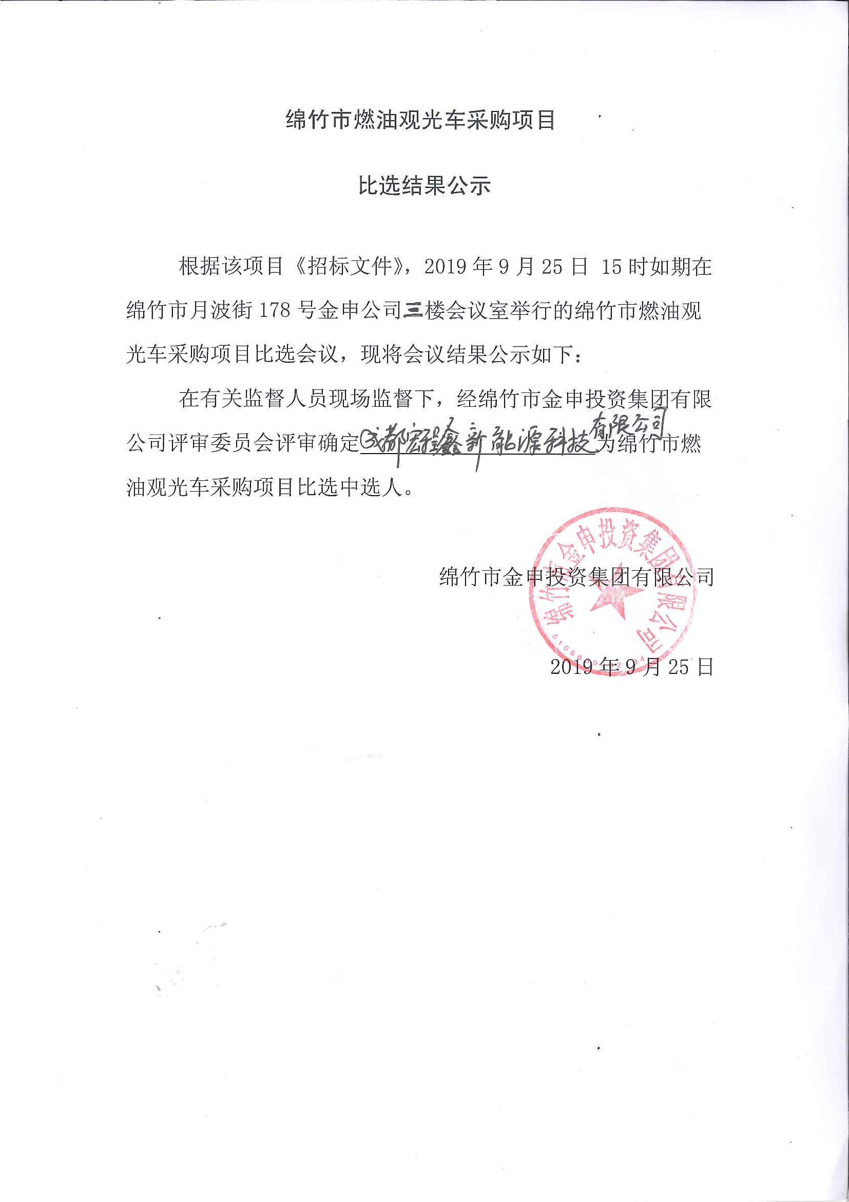 燃油观光车采购项目比选结果公示