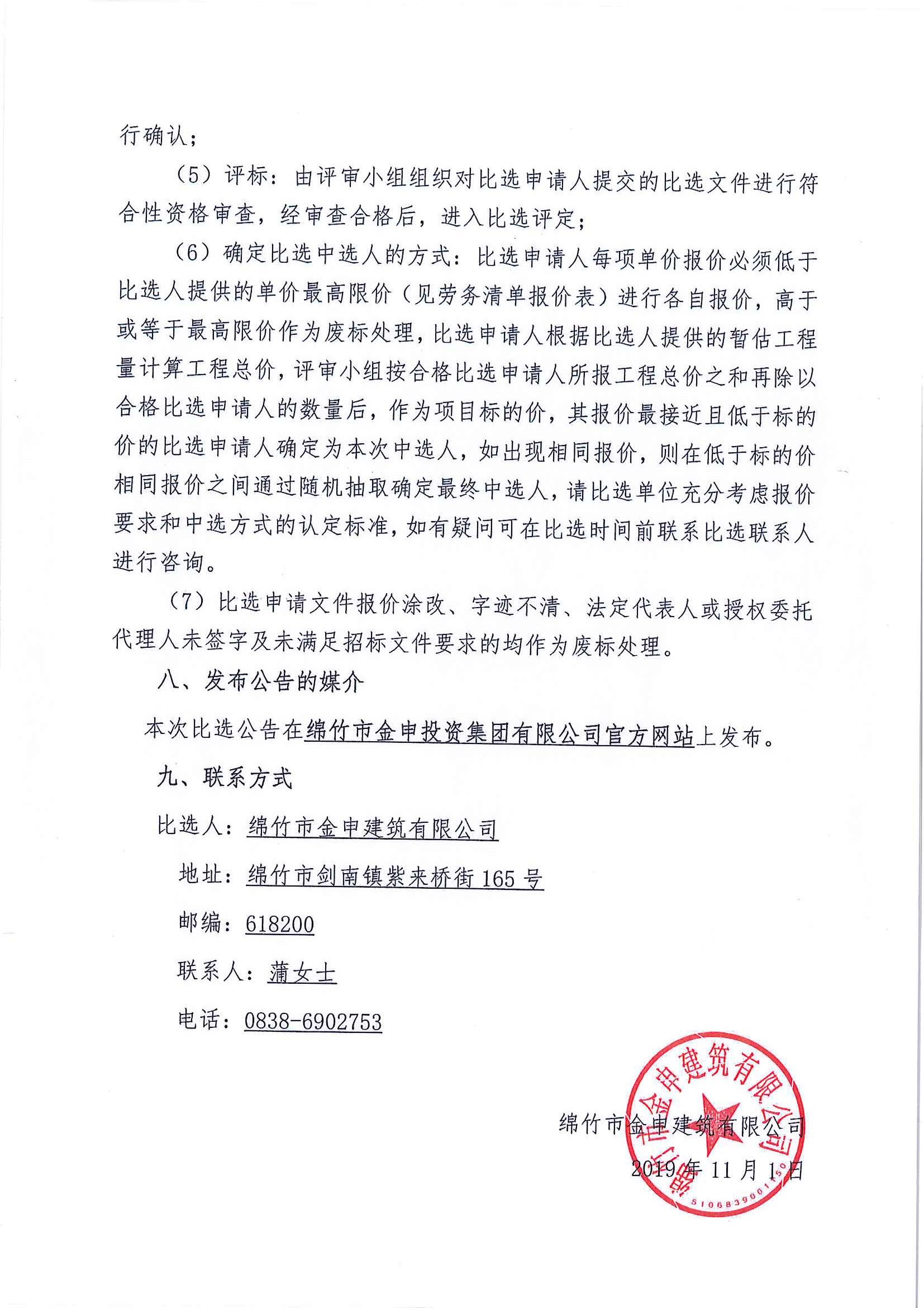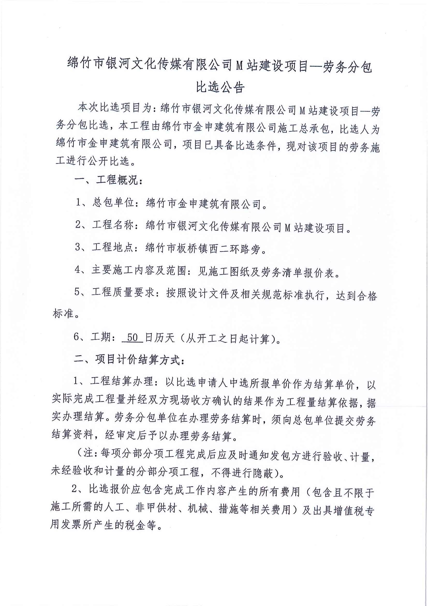 绵竹市银河文化传媒有限公司M站建设项目-劳务分包比选公告