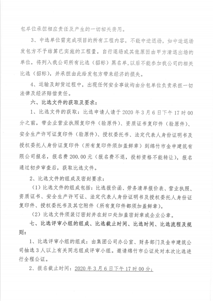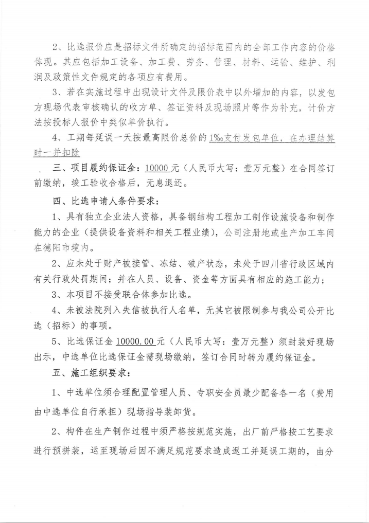 新建检测车间钢结构制作专业分包比选公告(第二次比选)