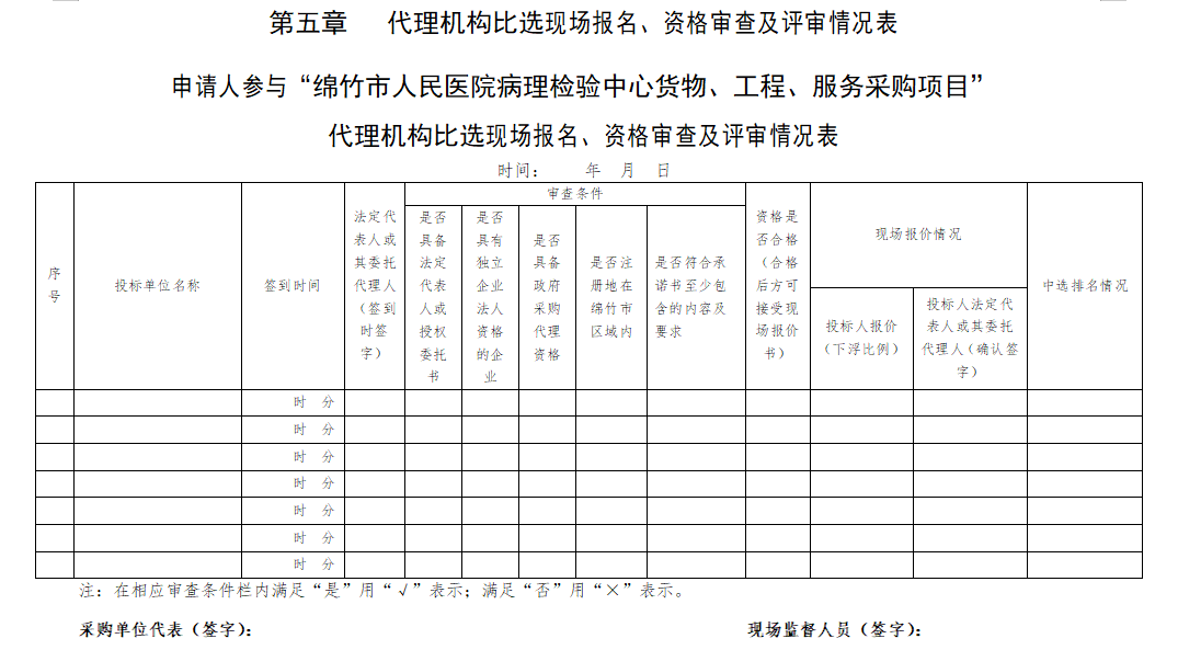 绵竹市人民医院病理检验中心货物、工程、服务采购项目