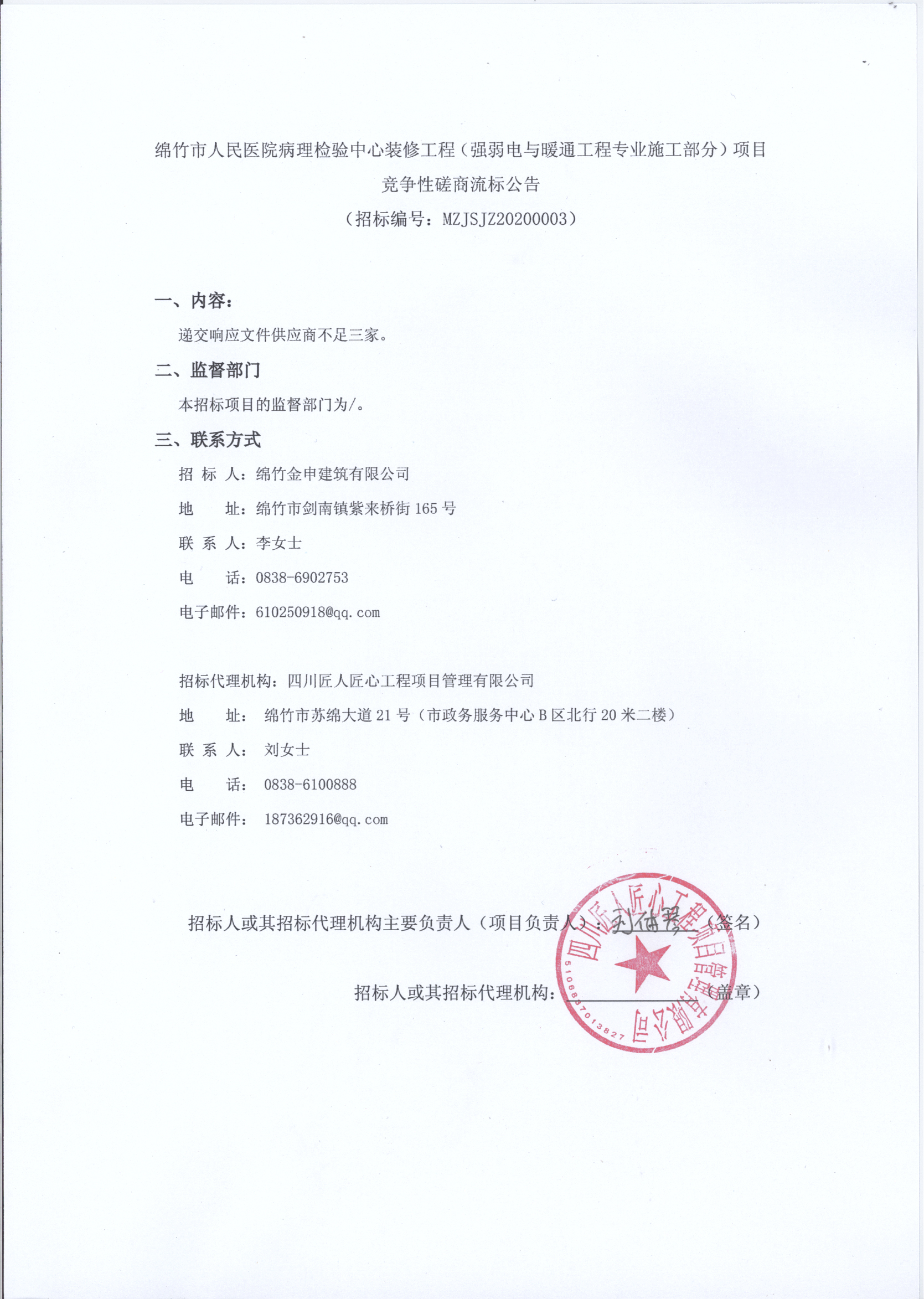 市医院病理检验中心(强弱电工程)项目竞争性磋商流标公告