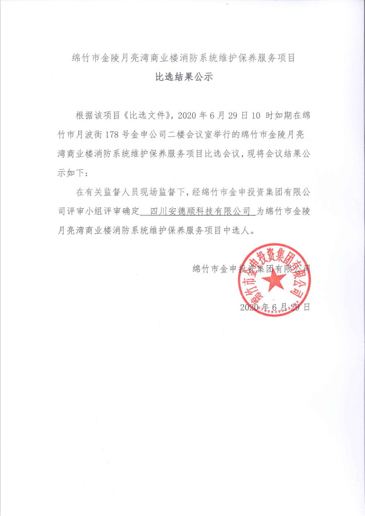 月亮湾商业楼消防系统维护保养服务项目比选结果公示