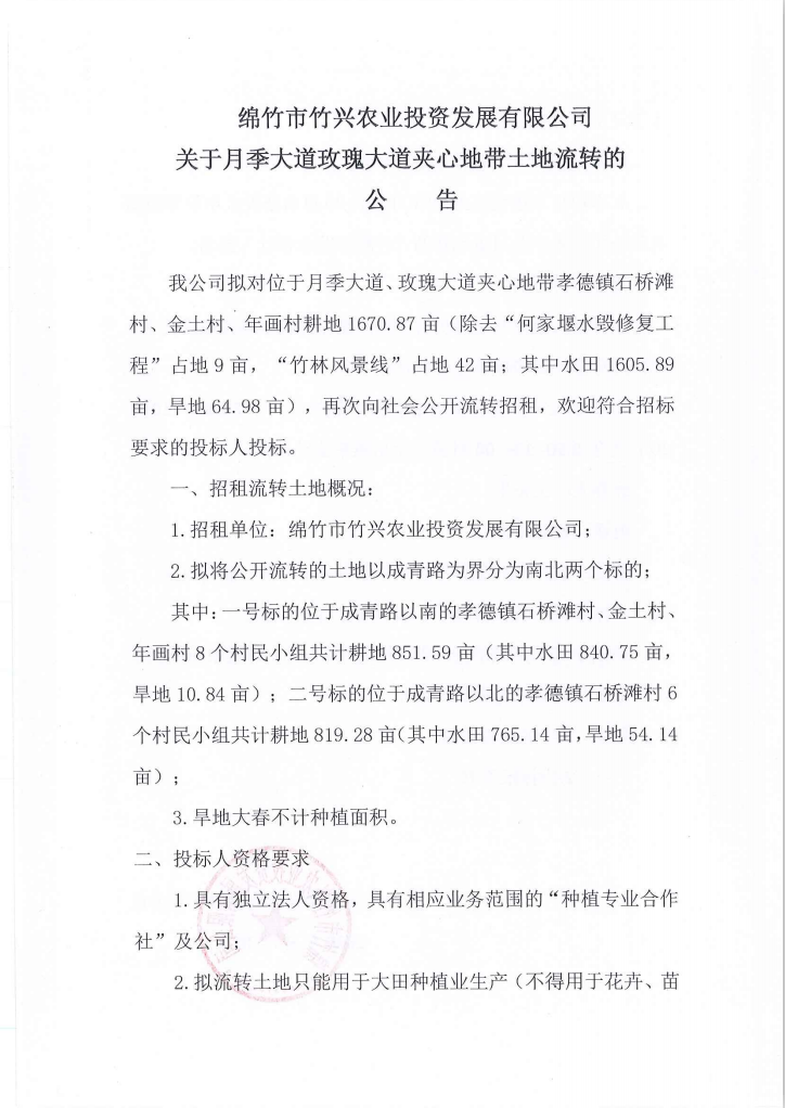 关于月季大道玫瑰大道夹心地带土地流转的公告