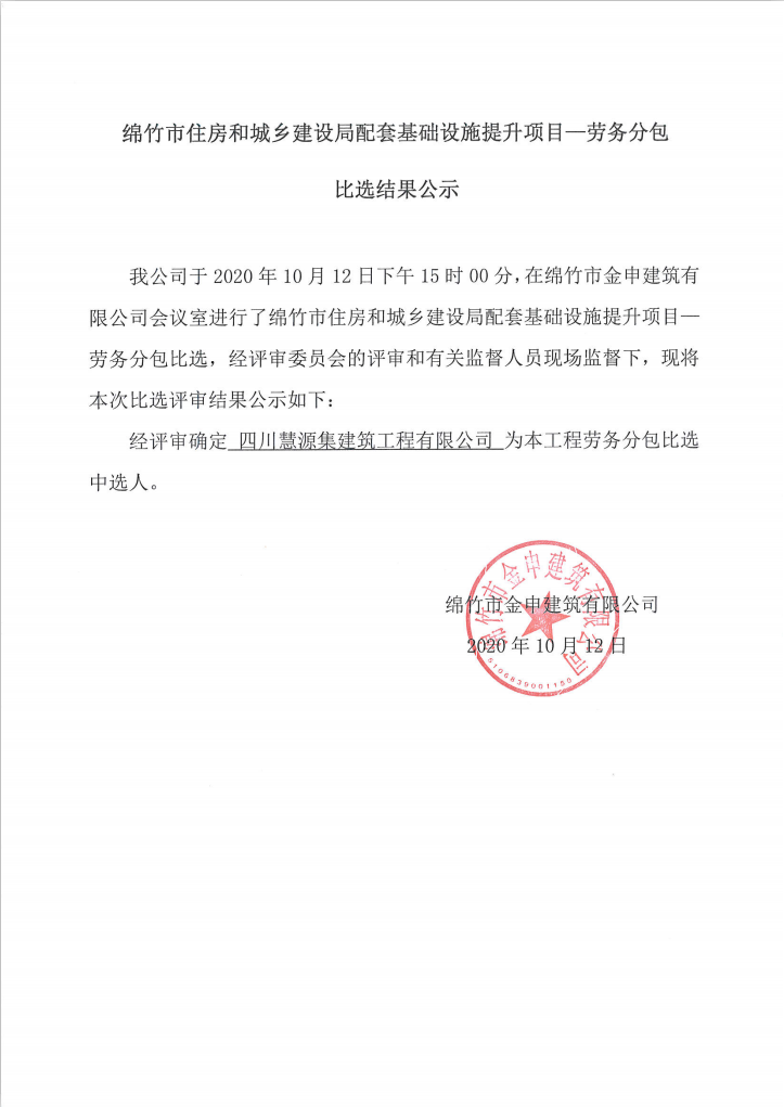 市住建局配套基础设施提升项目—劳务分包比选结果公示