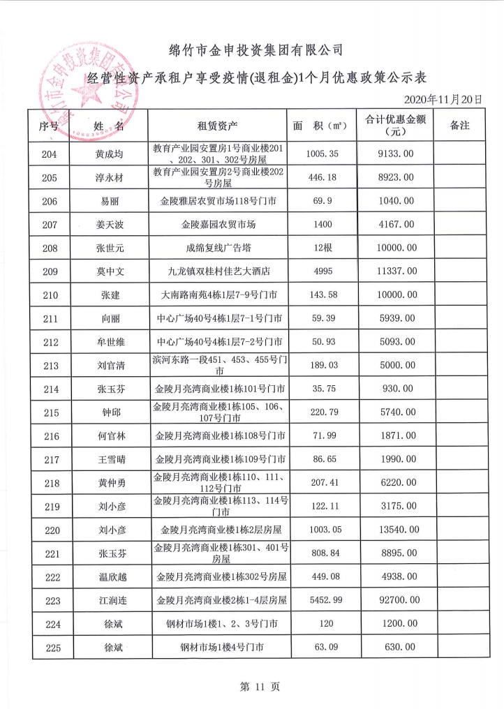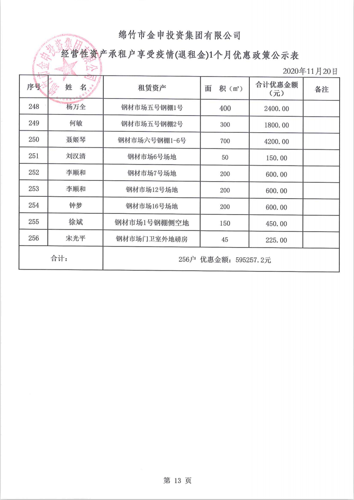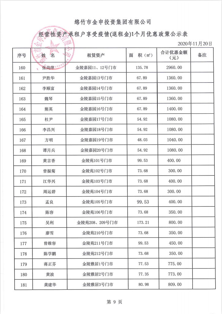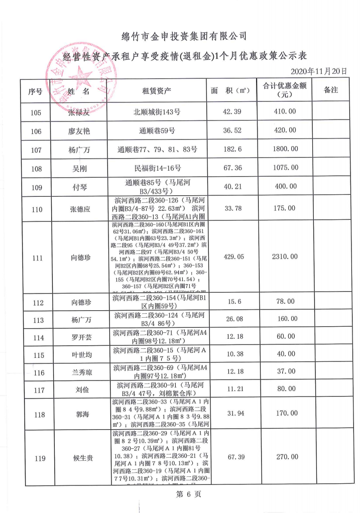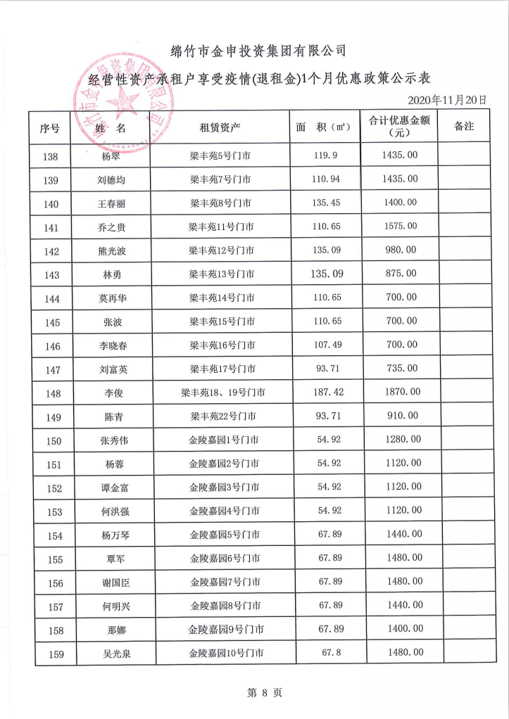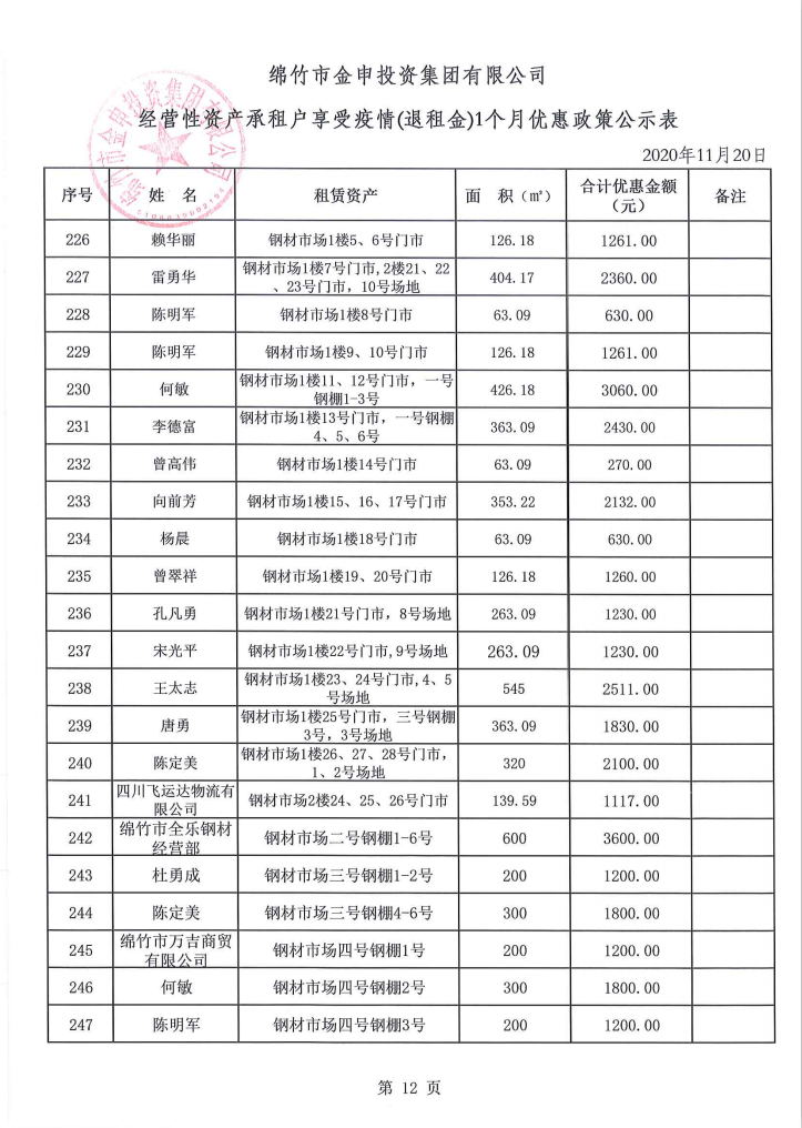 经营性资产承租户享受疫情(退租金)一个月优惠政策公示