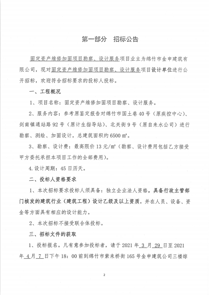 固定资产维修加固项目勘察、设计服务招标公告