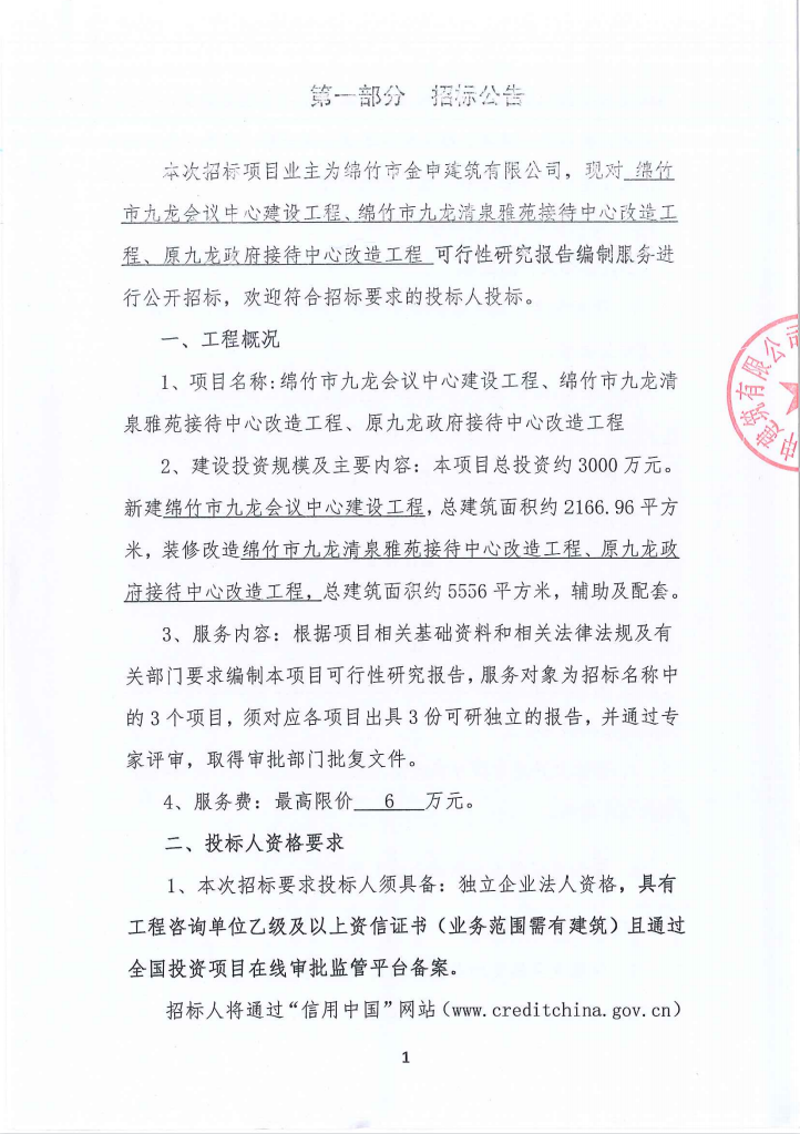 绵竹市九龙改造工程可行性研究报告编制服务招标公告