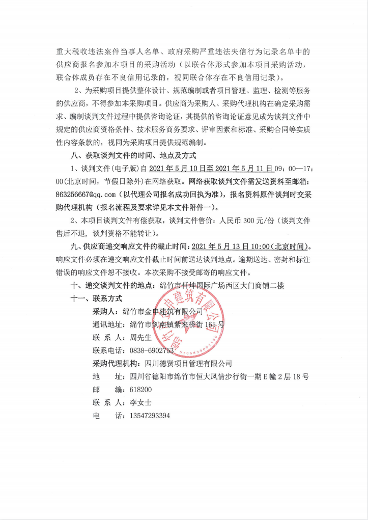 绵竹市人民医院教育中心室内装修工程—家具采购谈判邀请
