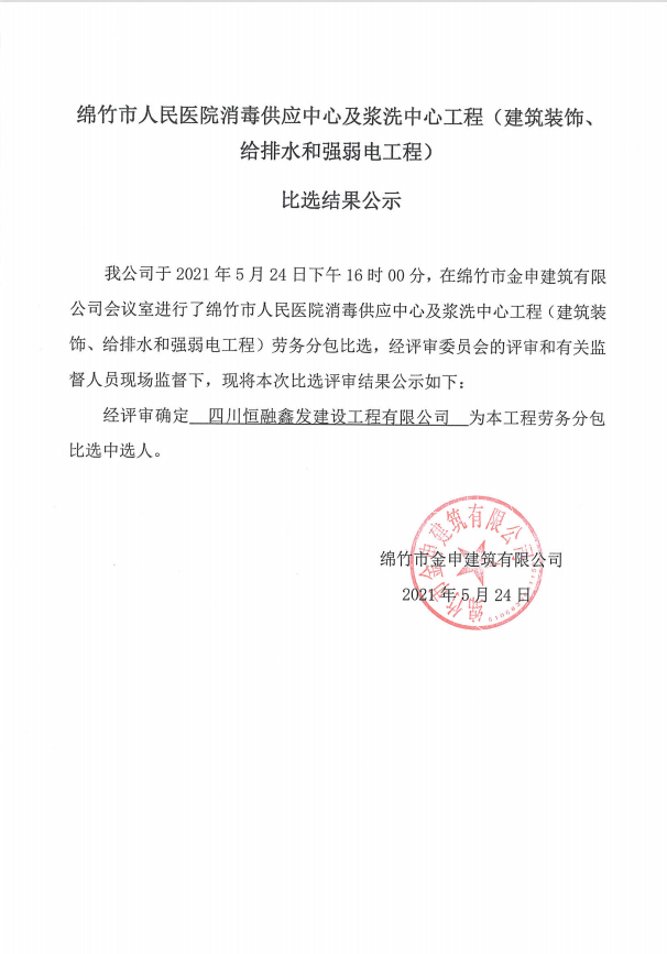 市人民医院消毒供应中心及浆洗中心工程比选结果公示