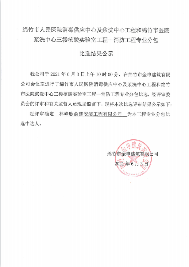 市医院消毒供应、浆洗及核酸实验室消防工程比选结果公示