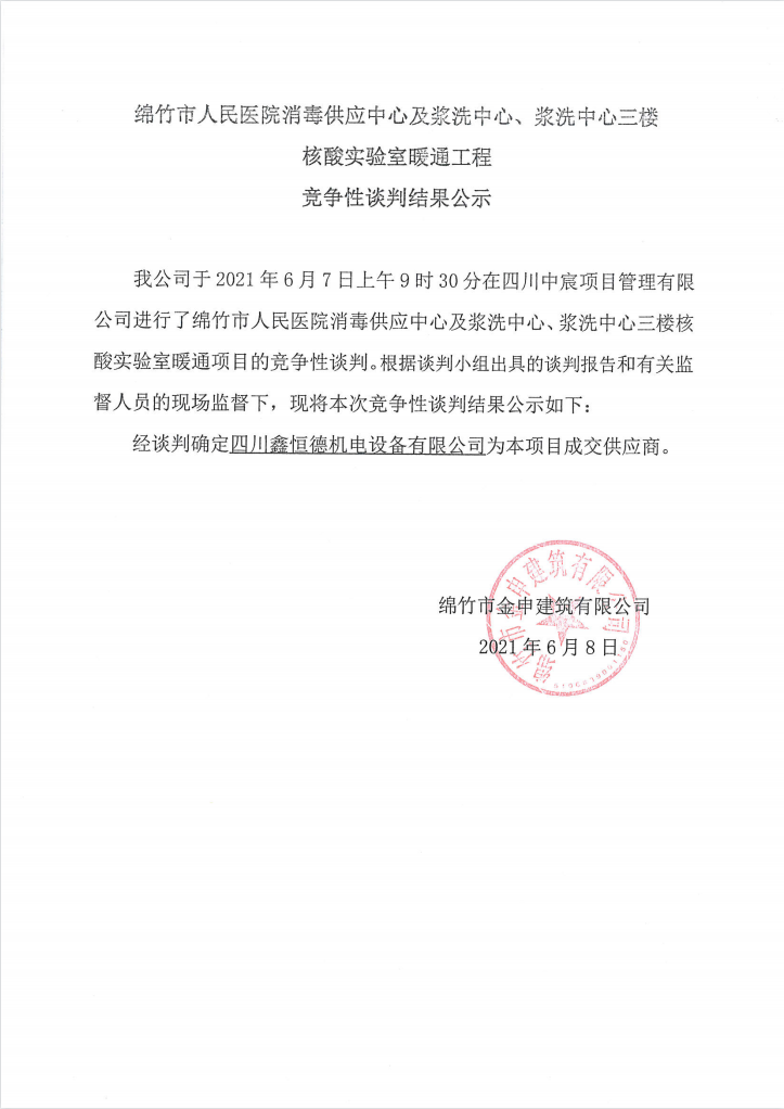 人民医院消毒供应及浆洗、核酸实验室暖通竞争性谈判结果