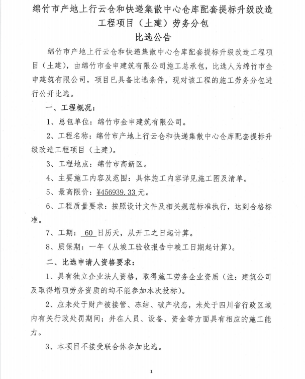仓库配套提标升级改造工程项目(土建)劳务分包比选公告