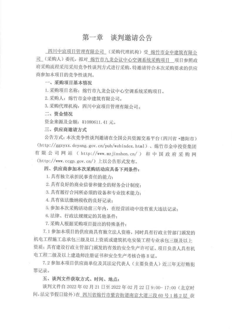 九龙会议中心空调系统采购项目谈判邀请公告