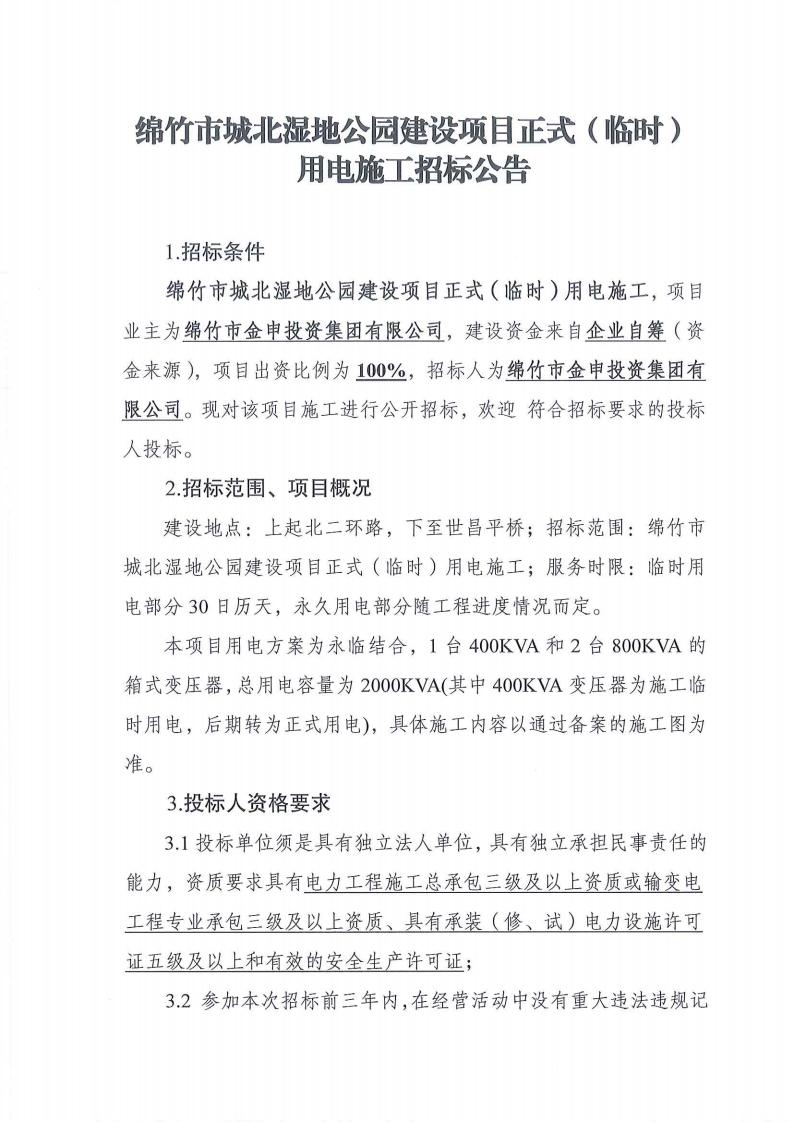 城北湿地公园建设项目正式(临时)用电施工招标公告