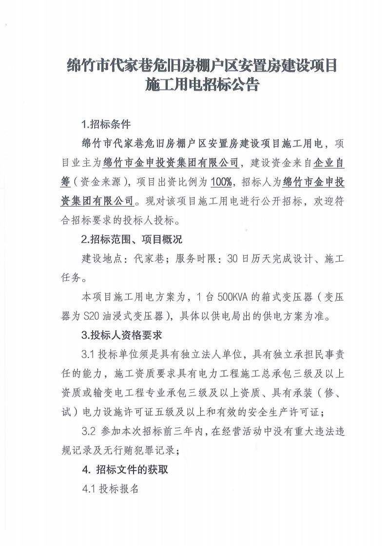 代家巷危旧房棚户区安置房建设项目施工用电招标公告