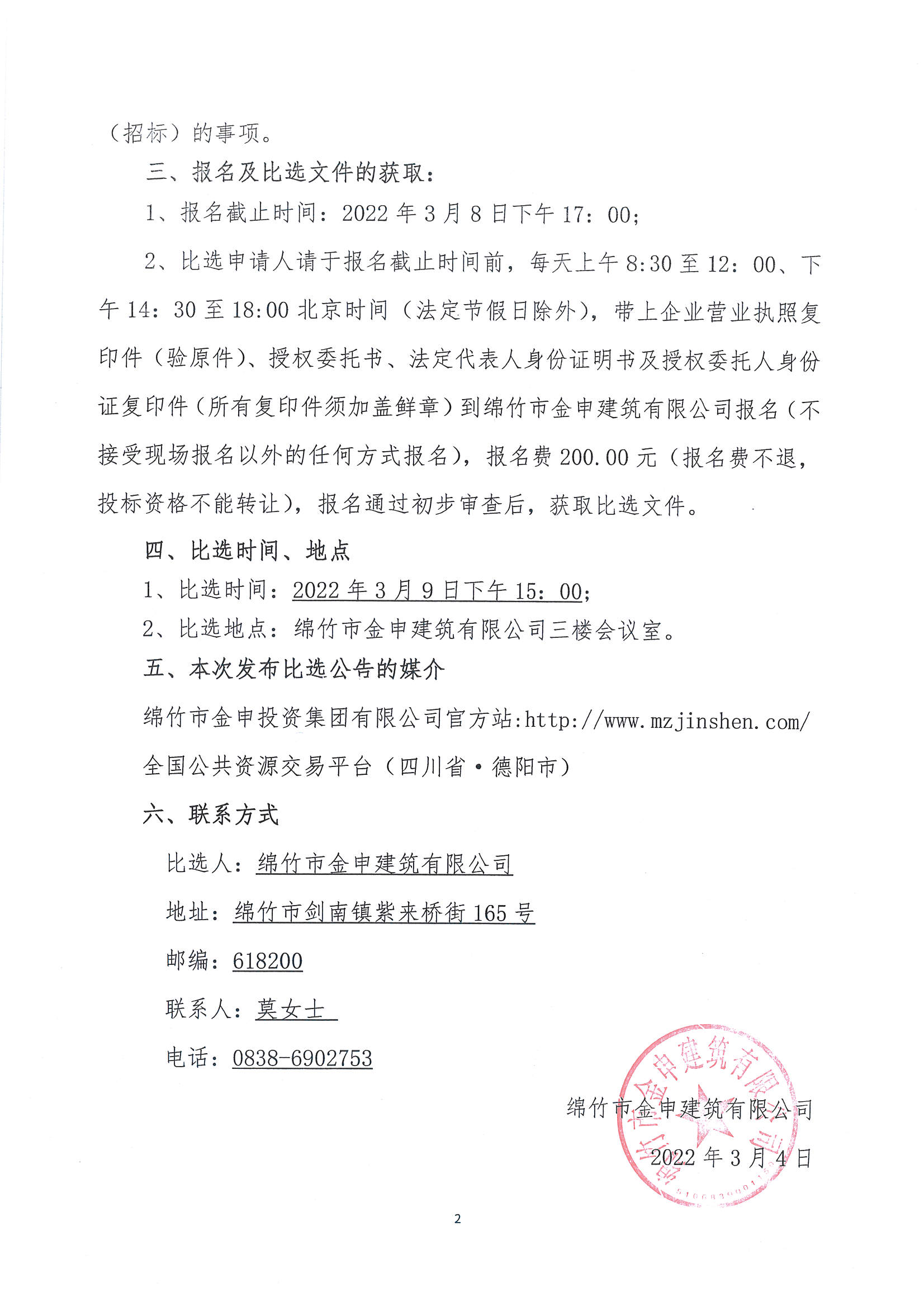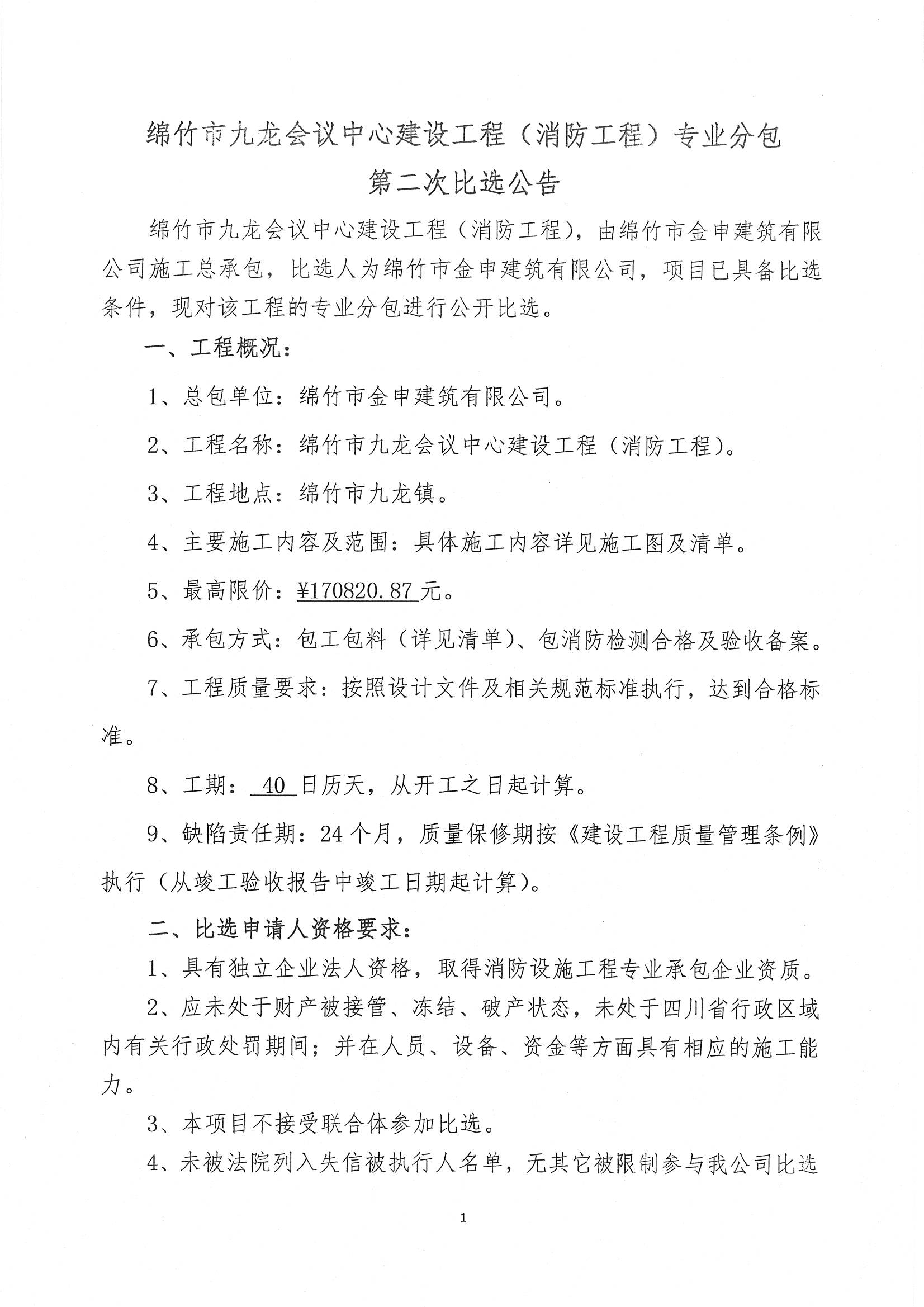九龙会议中心建设工程(消防)专业分包第二次比选公告