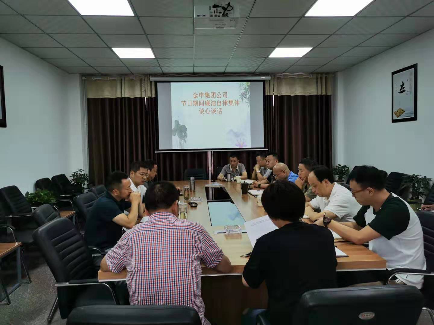 中秋、国庆将至,为深入落实中央八项规定精神,严防“四风”反弹回潮,崇廉拒腐,9月11日下午,金申集团公司开展节前廉洁自律集体谈心谈话,集团公司领导班子成员、部门及子公司负责人、党小组组长参加会议。